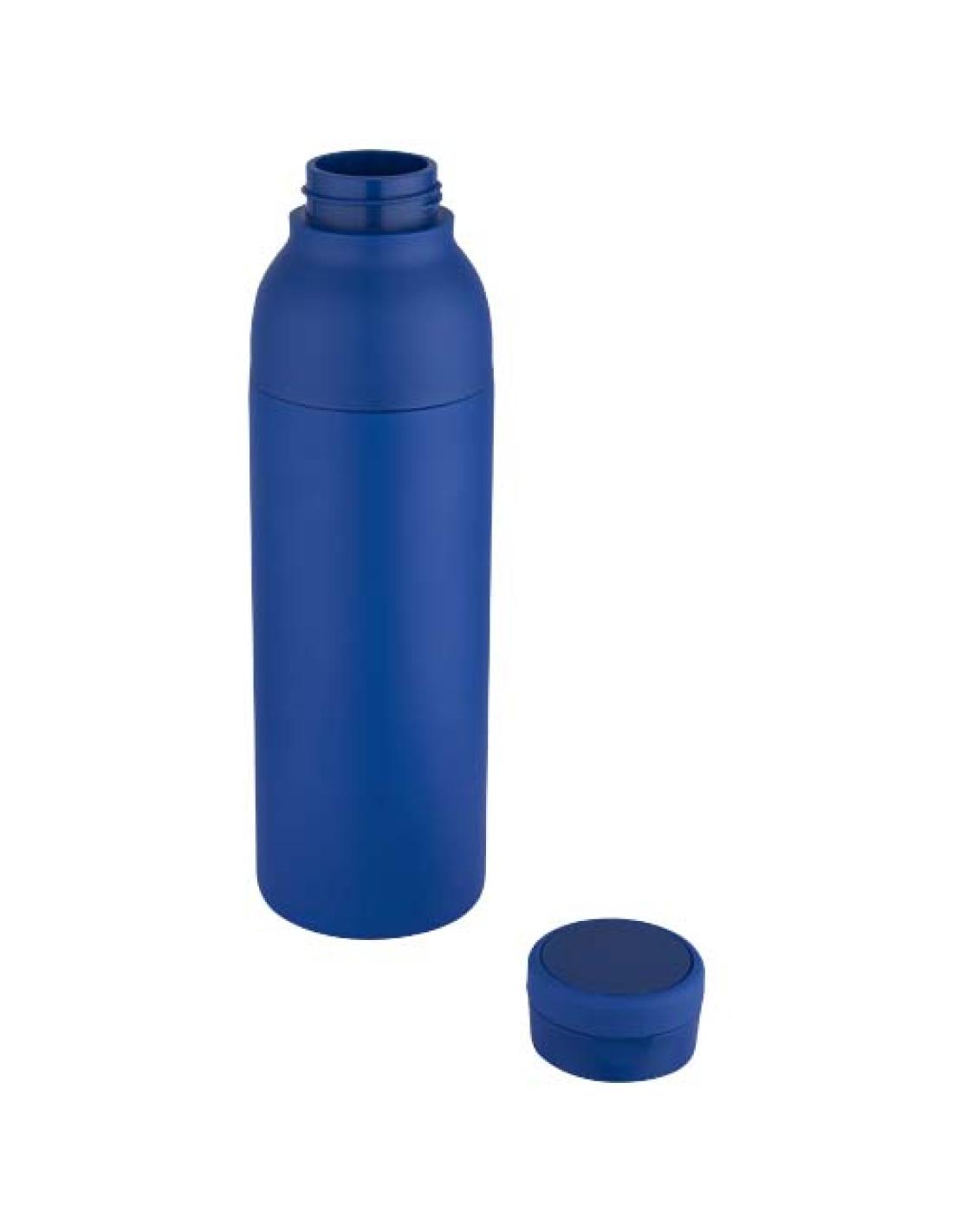 Botella de agua de acero inoxidable de doble pared, con aislamiento al vacío y certificación RCS que incorpora una discreta asa de silicona en la tapa. La construcción en dos piezas facilita la limpieza, mientras que el duradero recubrimiento en polvo y el chapado en cobre garantizan un rendimiento duradero. Se presenta en una caja de regalo de cartón reciclado. Capacidad: 650 ml.