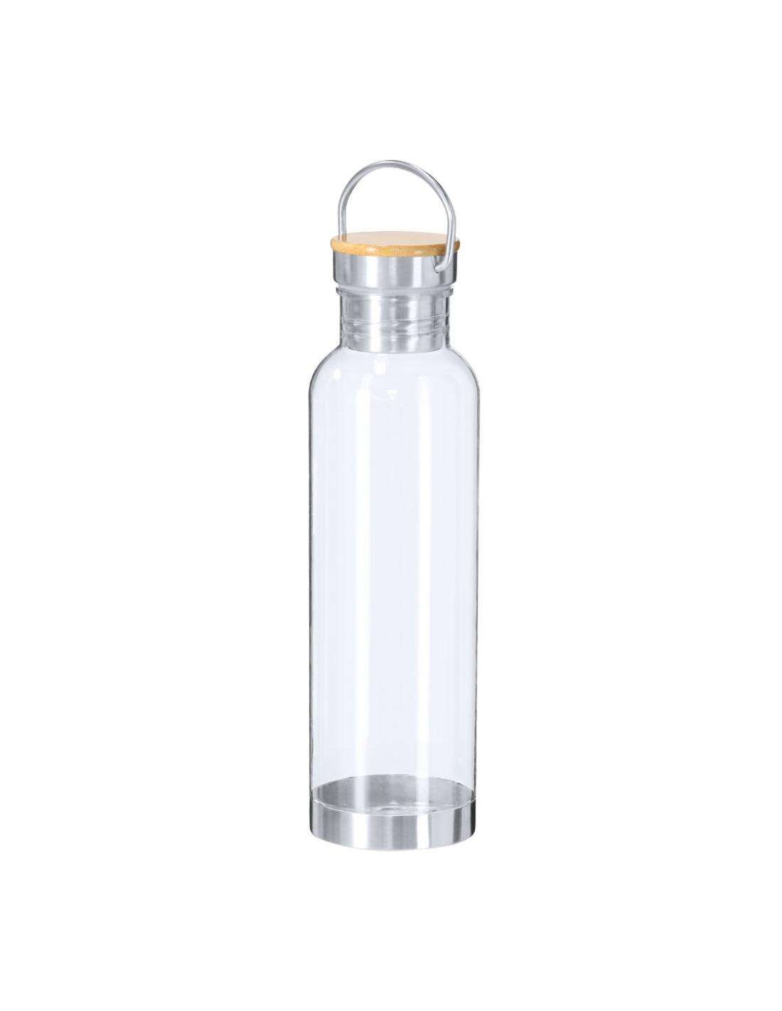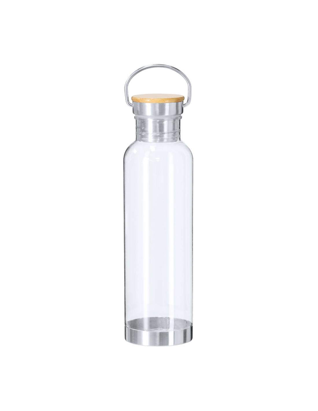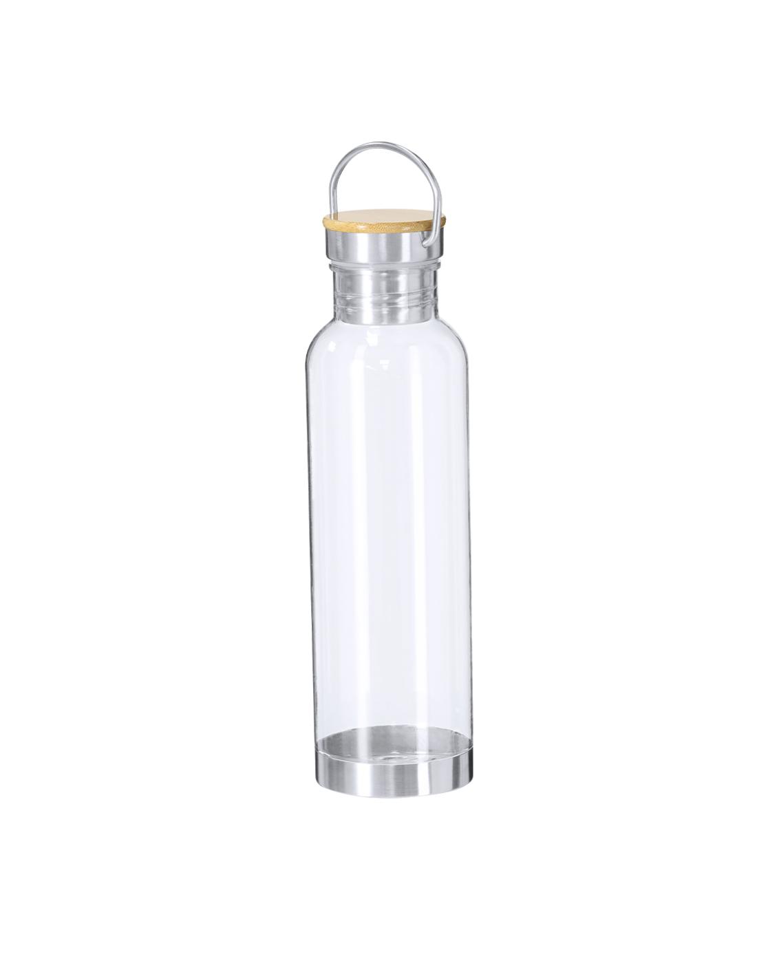 Bidón fabricado en RPET con capacidad de 800 ml. Cuerpo en RPET transparente. Tapón a rosca equipado con asa de trasporte en acero inoxidable con tapa en bambú y base en acero inoxidable. El material RPET se elabora a partir de plástico reciclado, para así fomentar la reutilización de residuos plásticos y ayudar a la sostenibilidad del planeta. Materiales como el Bambú fomentan la utilización de materias primas naturales reduciendo las emisiones contaminantes. Además, el bambú proviene de una planta de gran resistencia y versatilidad, con crecimiento y regeneración rápida, siendo una excelente alternativa al uso de madera tradicional.