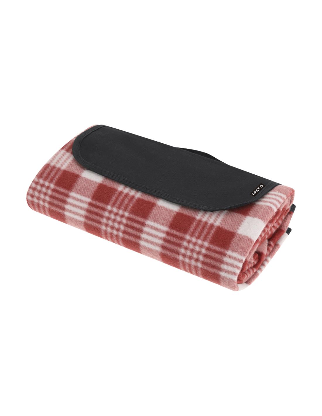 Manta de picnic de calidad premium, fabricada en poliéster RPET de 160g/m2, elaborado a partir de plástico reciclado para así fomentar la reutilización de residuos plásticos y contribuir a la sostenibilidad del planeta. Medidas 120x150cm, con lado para sentarse en patrón tartán bicolor de suave tacto. Lado en contacto con el suelo en resistente PEVA. De fácil plegado y de tamaño compacto, incluye asa de transporte y solapa con cierre de velcro, con distintivo RPET en etiqueta.