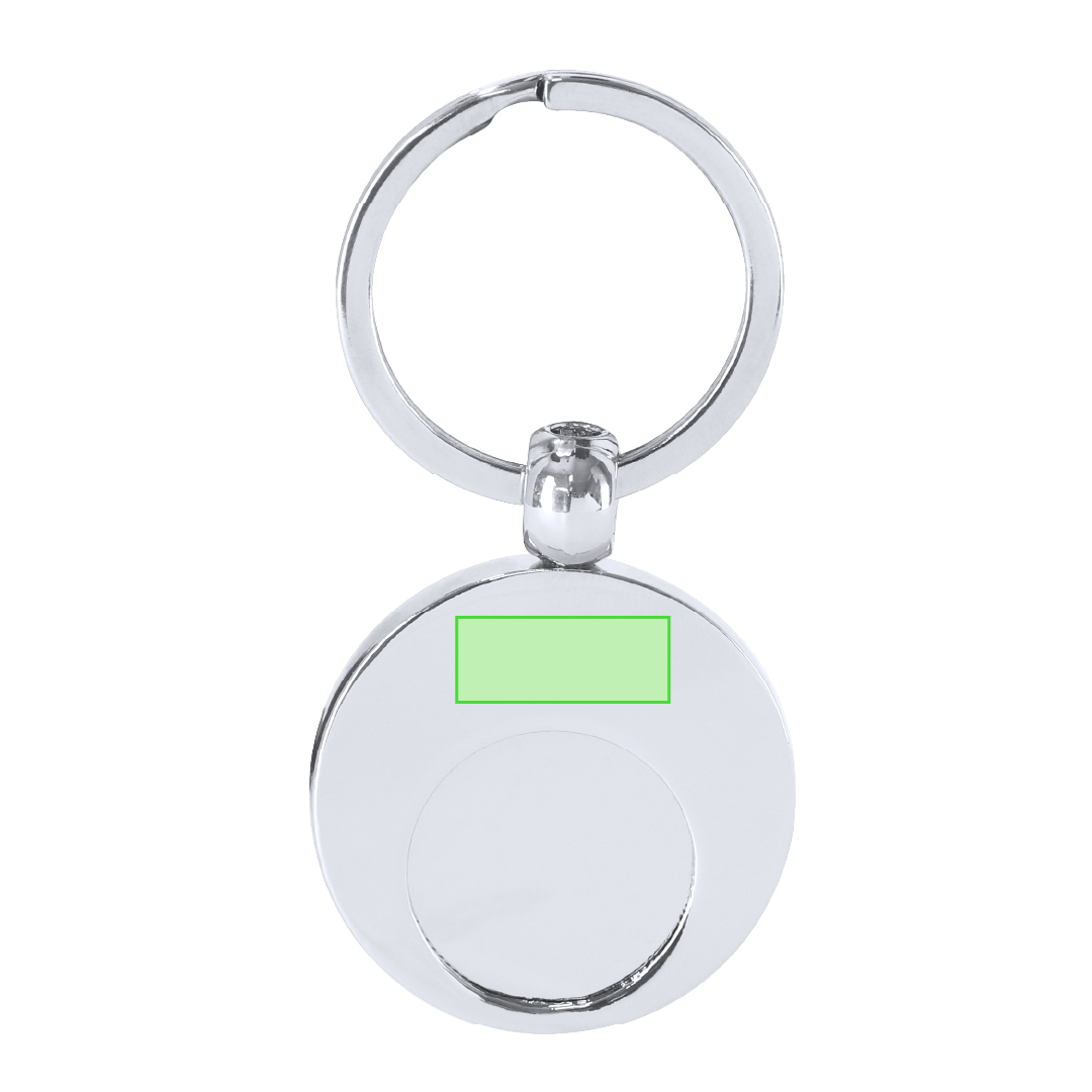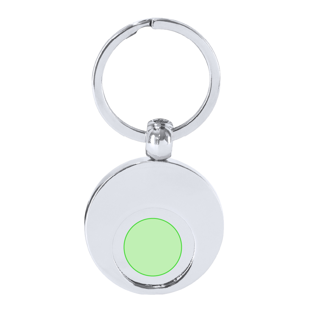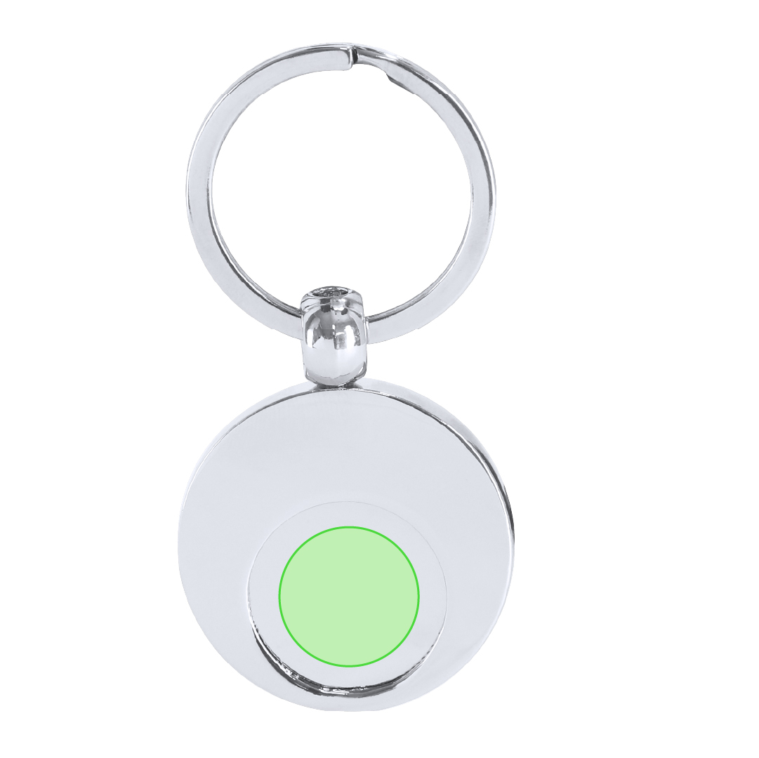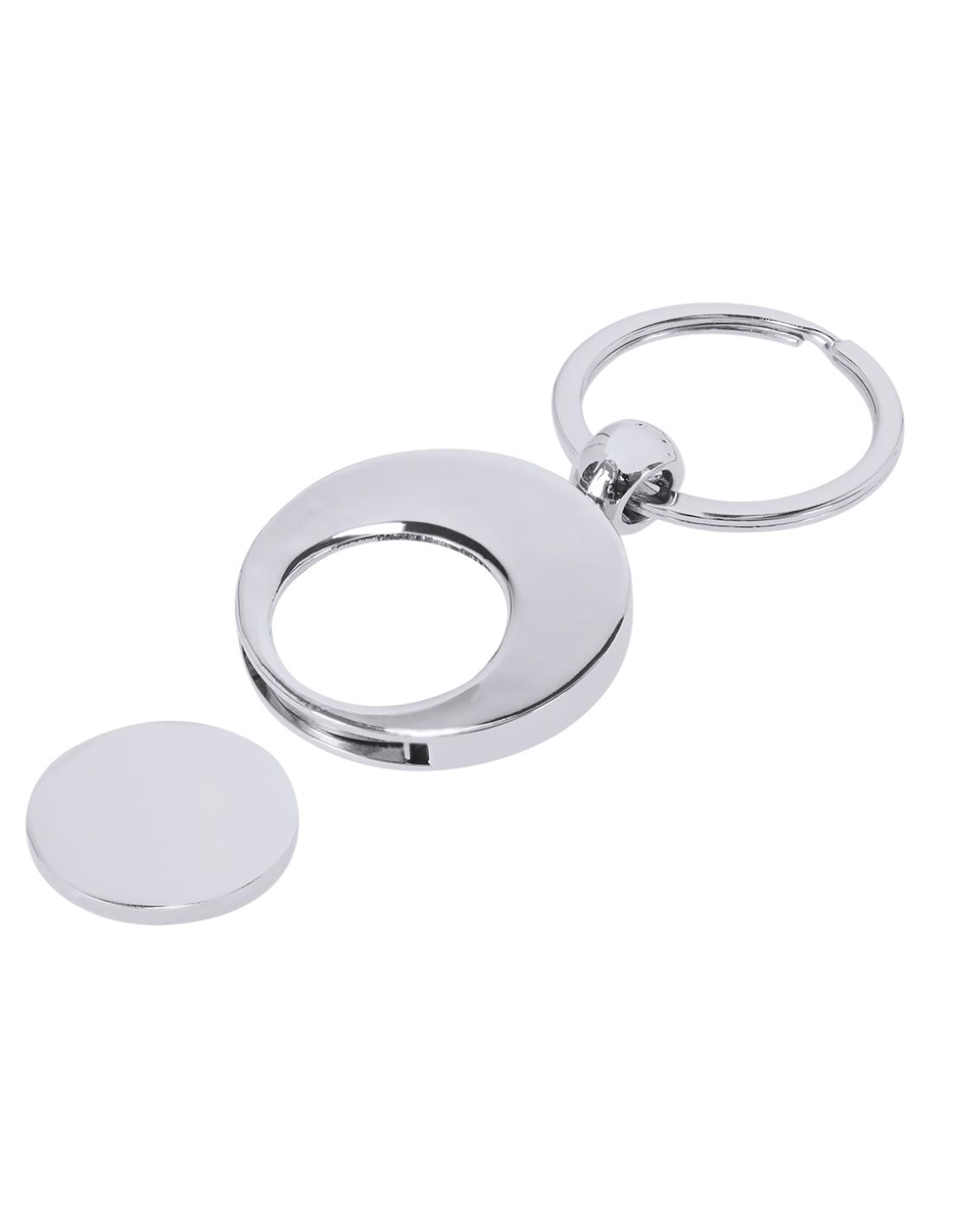 Llavero metálico con moneda extraíble y anilla metálica cromada.