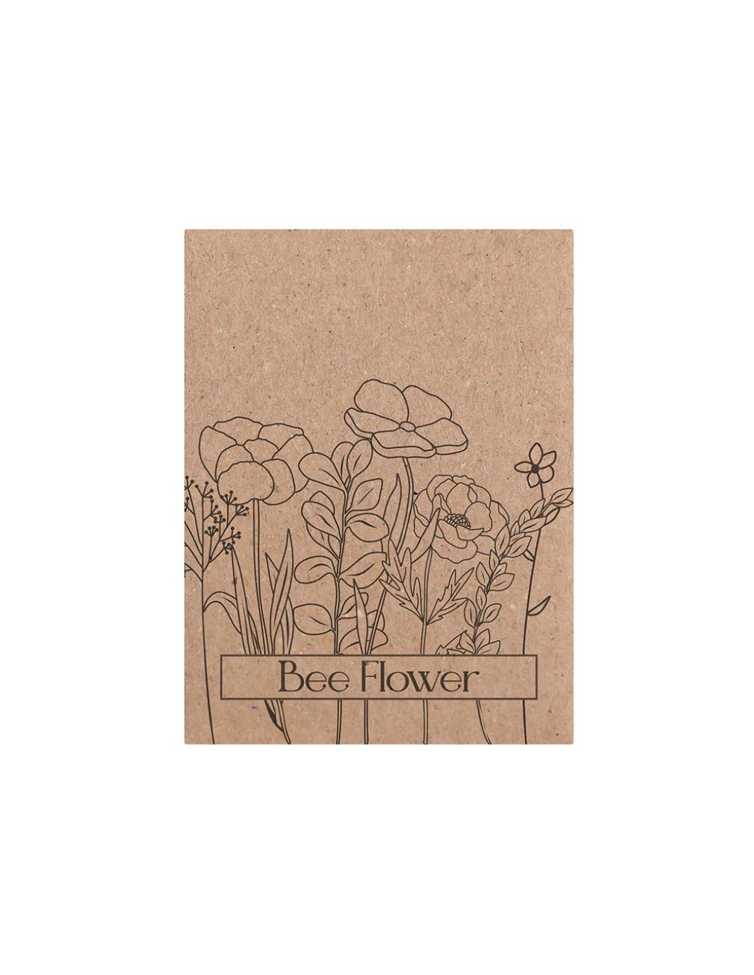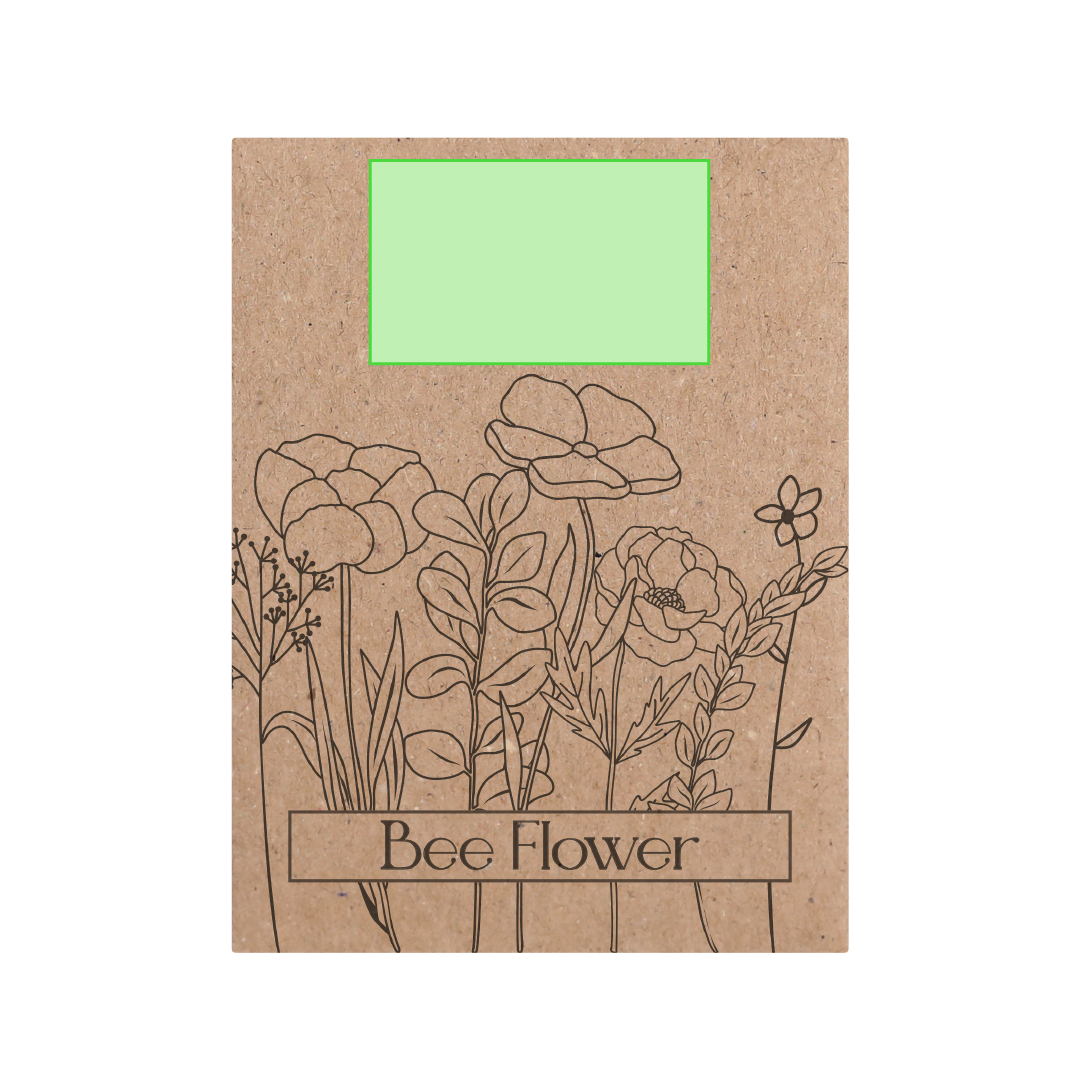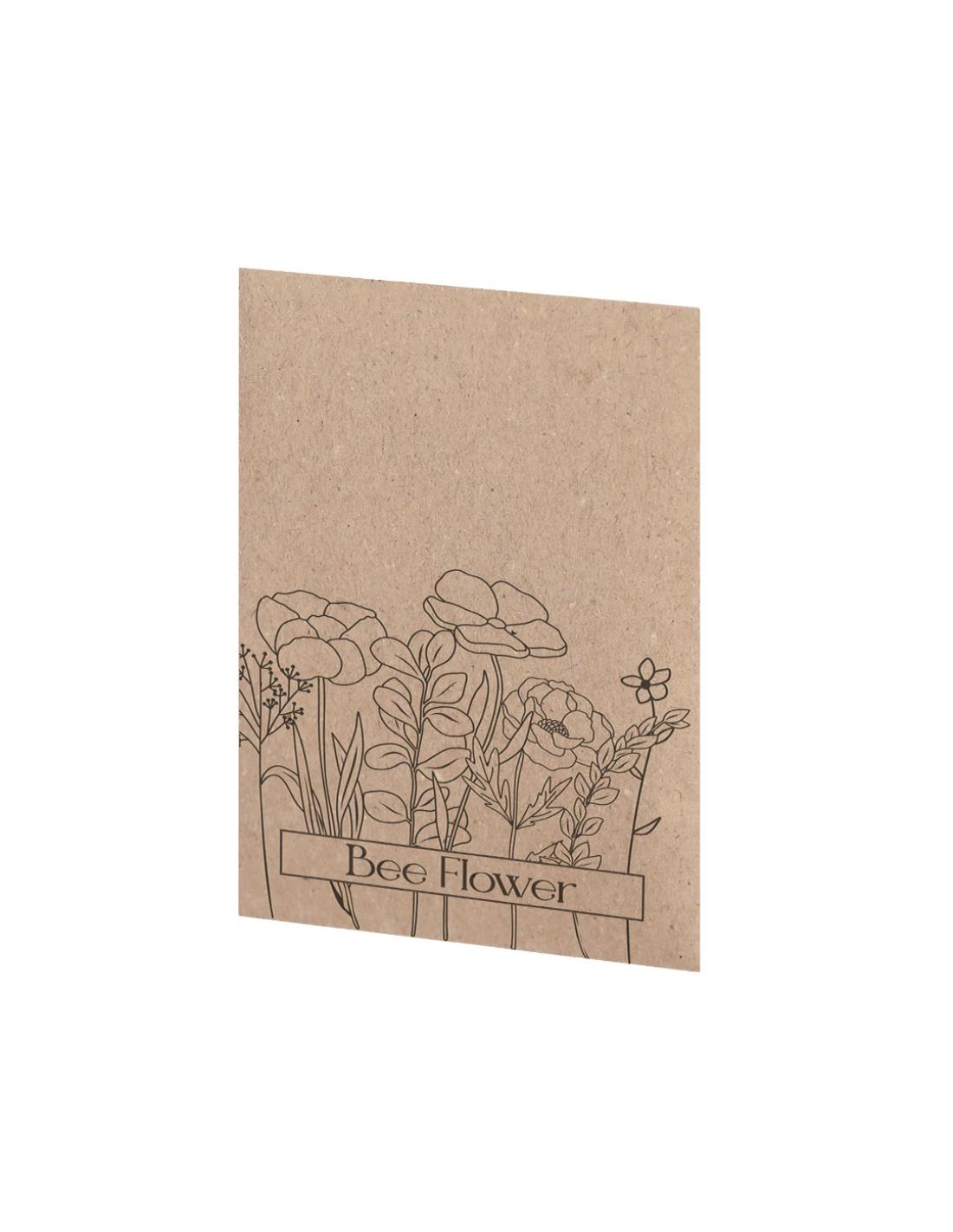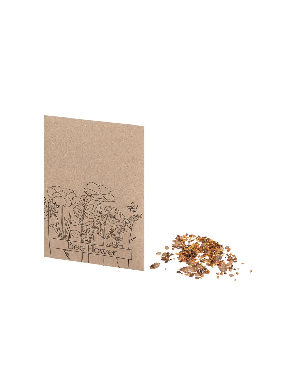 Sobre de papel kraft que contiene una mezcla de semillas de flores silvestres, ideal como obsequio ecológico, permitiendo la siembra directa.