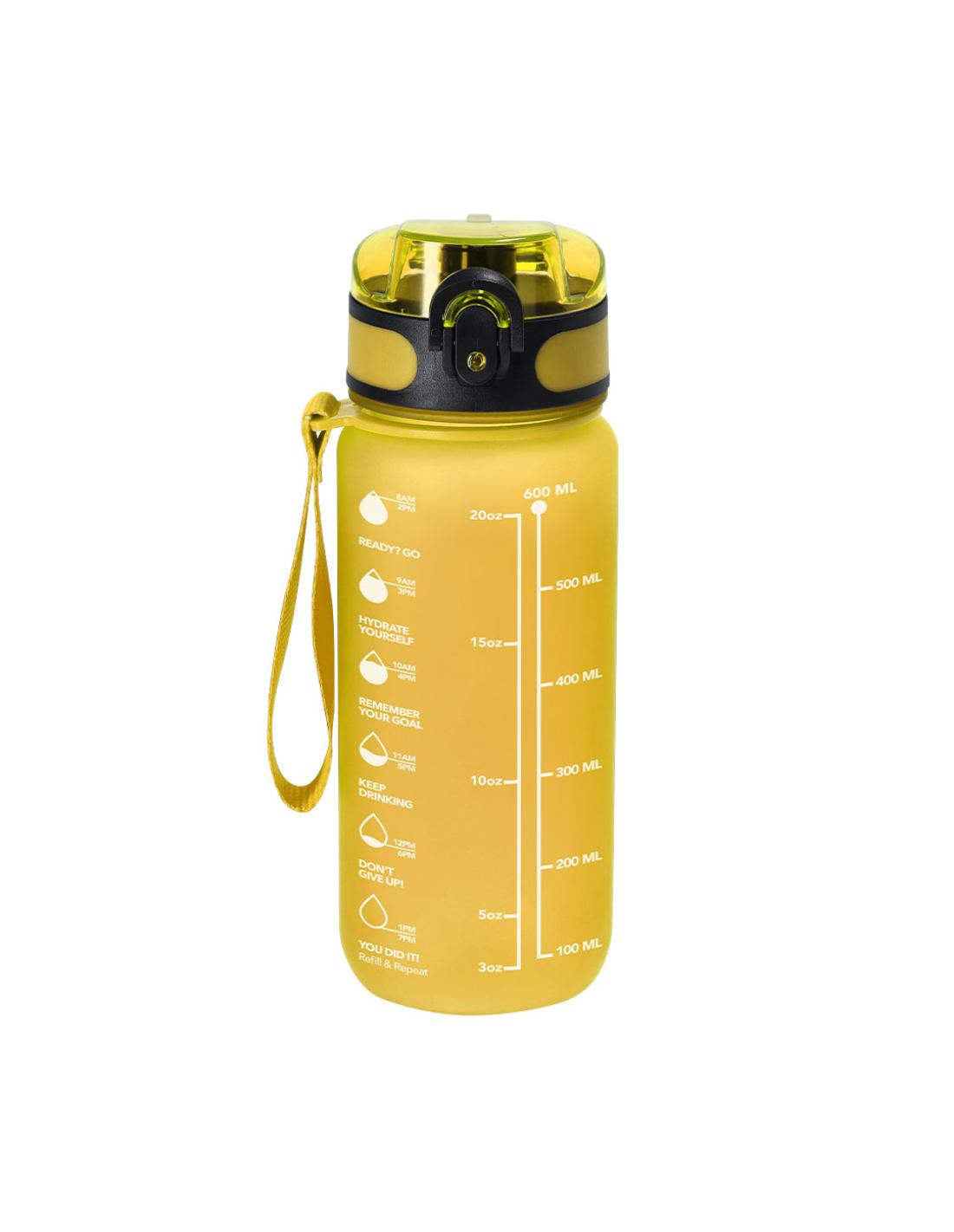 Bidón de 750 ml de capacidad, fabricado en resistente RPET y en acabado translúcido mate. Ingeniosa tapadera con resorte de fácil apertura pulsando el botón frontal, con cierre de seguridad. Sellado óptimo de tapón a rosca y asa para un cómodo transporte en el mismo color. Libre de BPA.