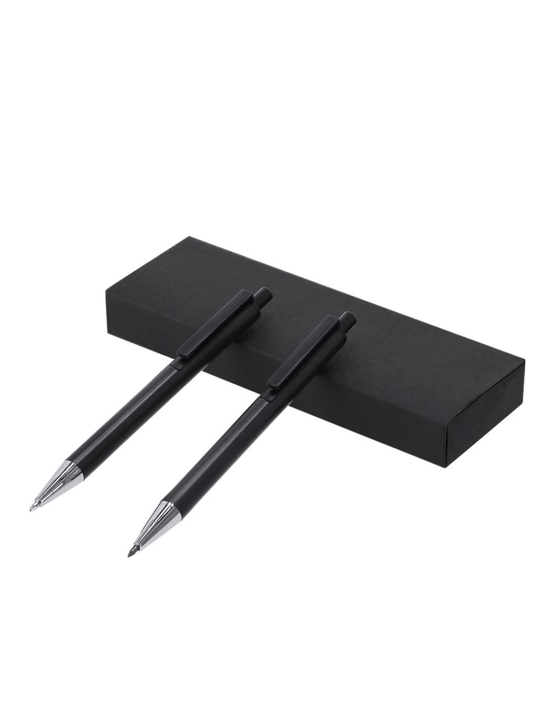 Set compuesto por un bolígrafo de tinta azul y un lápiz eterno, fabricados en Aluminio Reciclado. El lápiz eterno ofrece escritura continua, evitando generar residuos. Ambos cuentan con mecanismo pulsador. Diseñados con clip a juego y detalles cromados. Presentados en estuche de cartón reciclado de color negro. Con distintivo de AL Recycled impreso.
