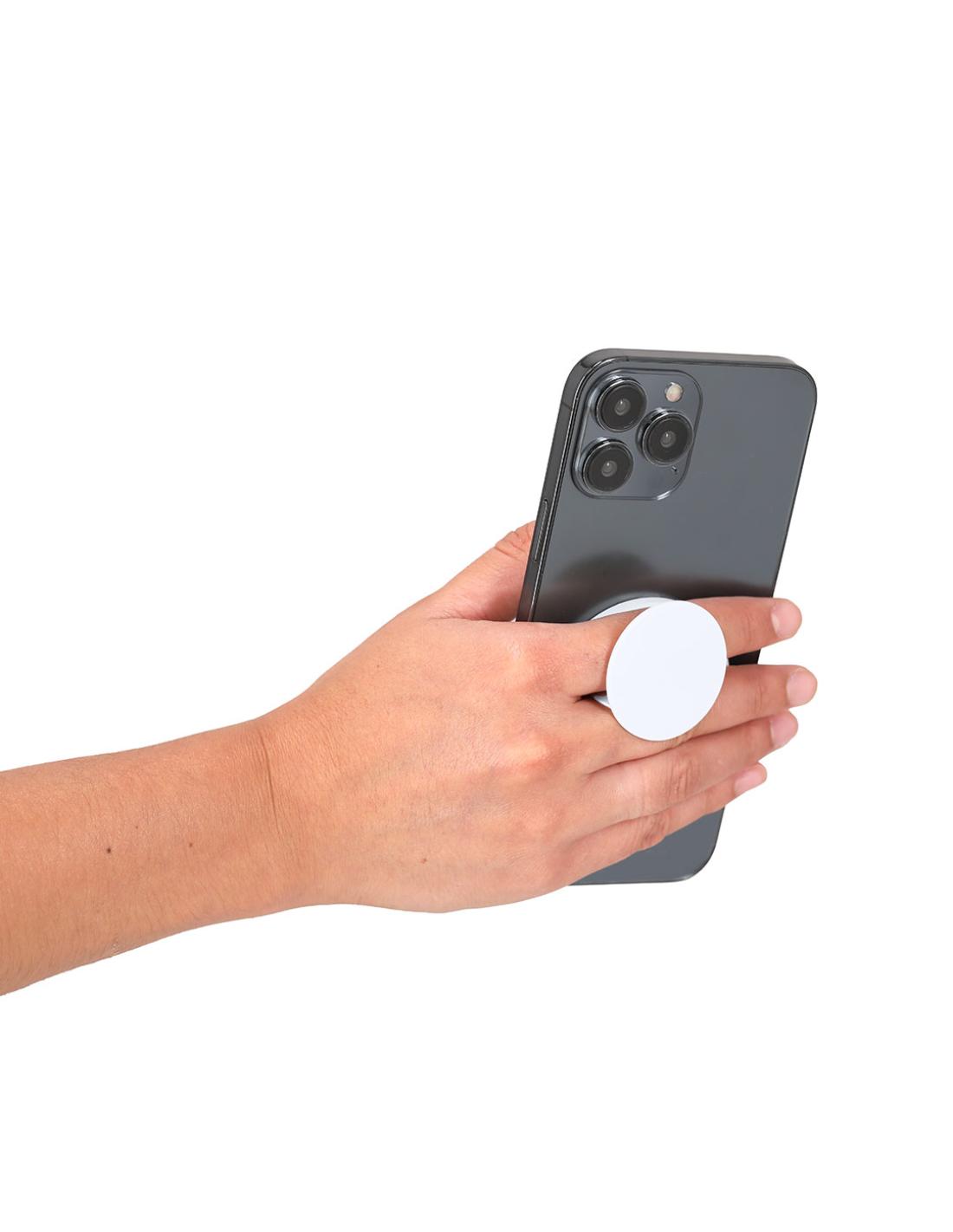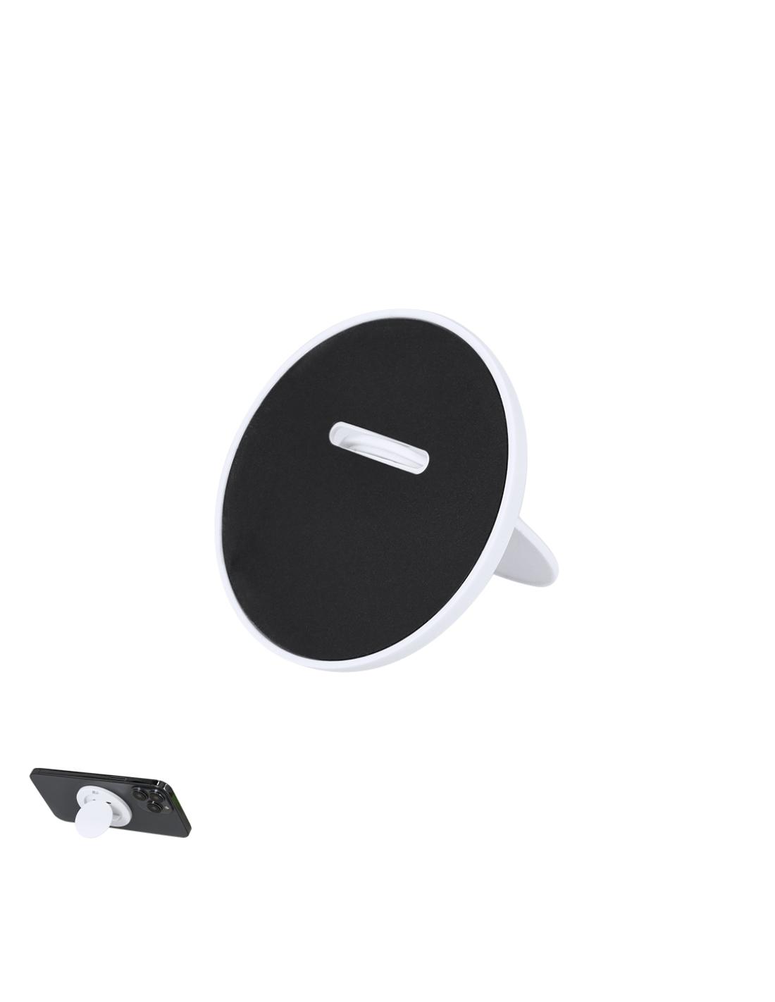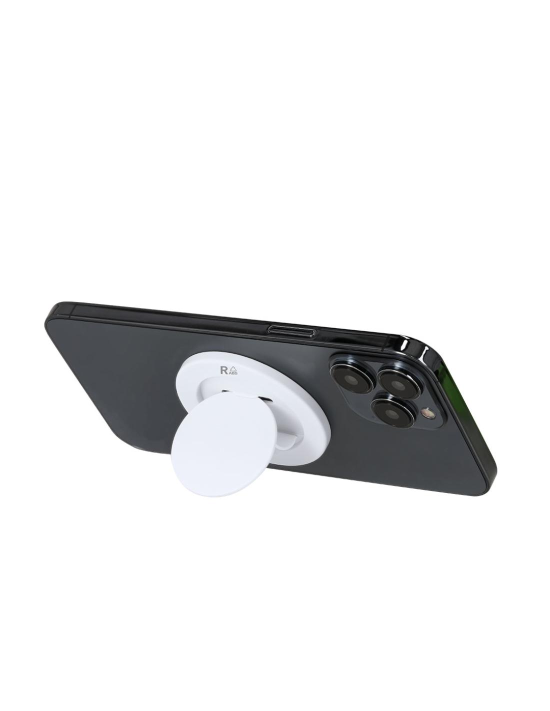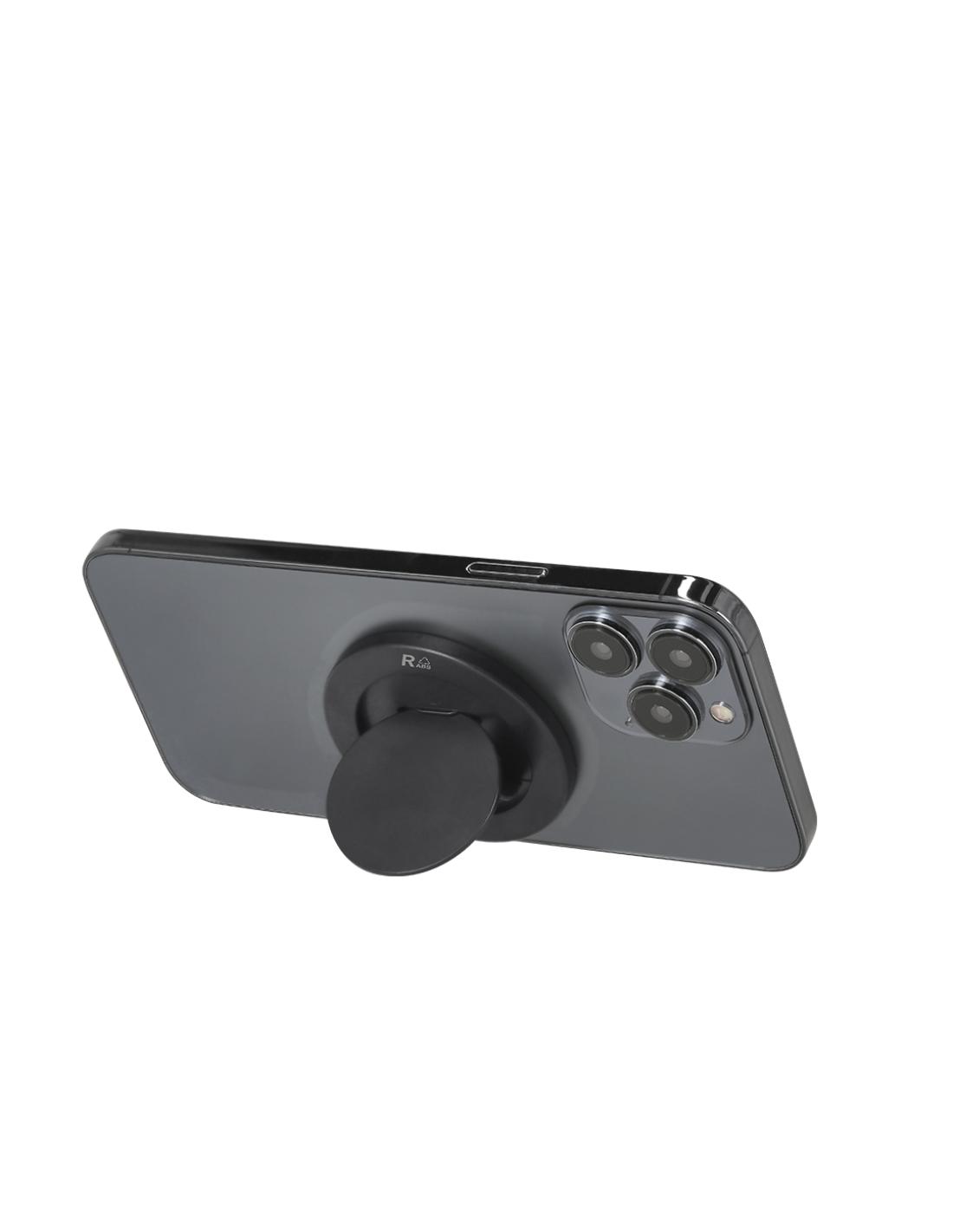Soporte magnético para smartphone en ABS Reciclado con diseño compacto y plegable. Incluye función doble, soporte retráctil para apoyar teléfono y sujeción segura.