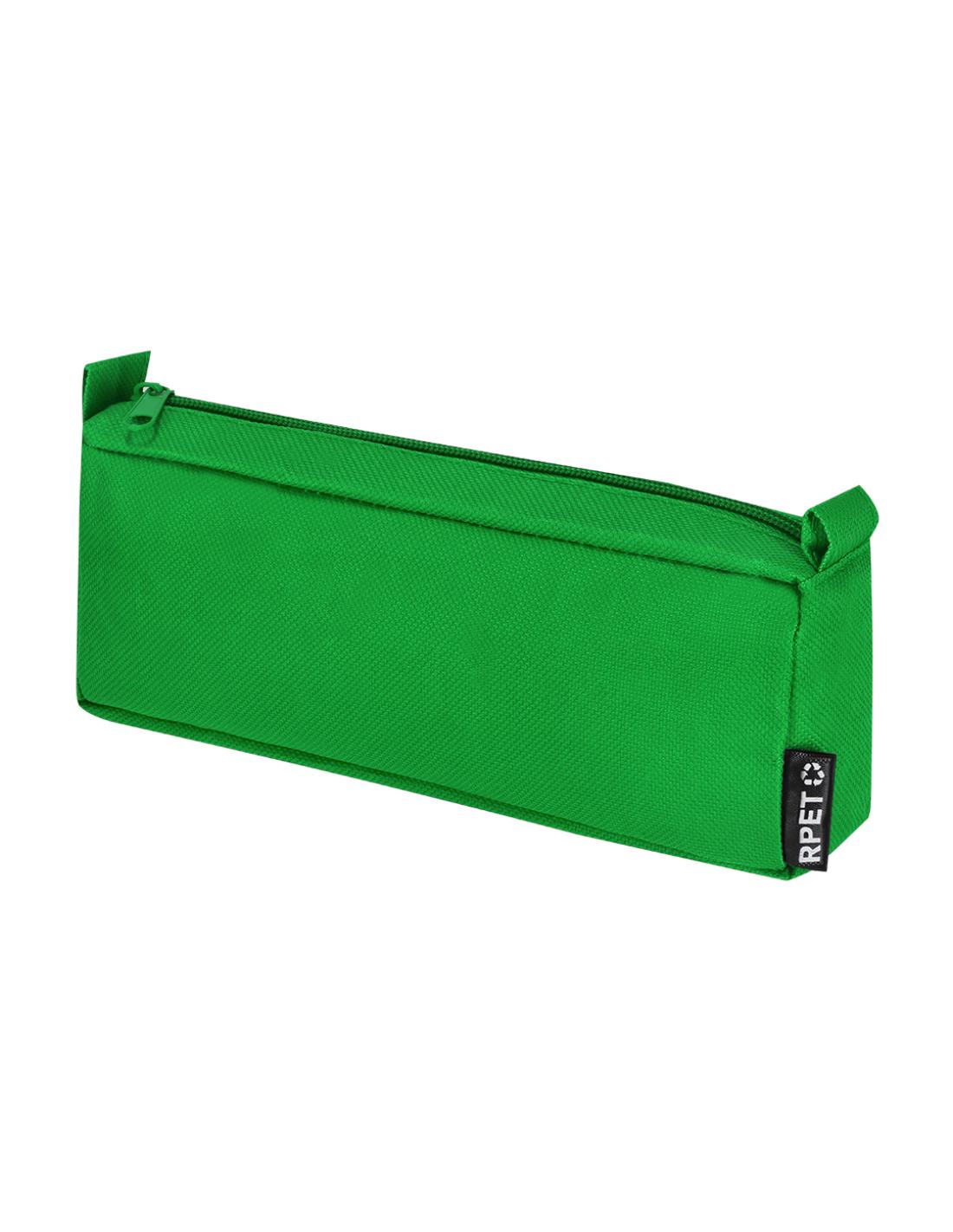 Estuche rectangular confeccionado en poliéster 600D RPET. Cuenta con cremallera a juego y cintas tiradoras en los laterales. Incluye distintivo RPET.