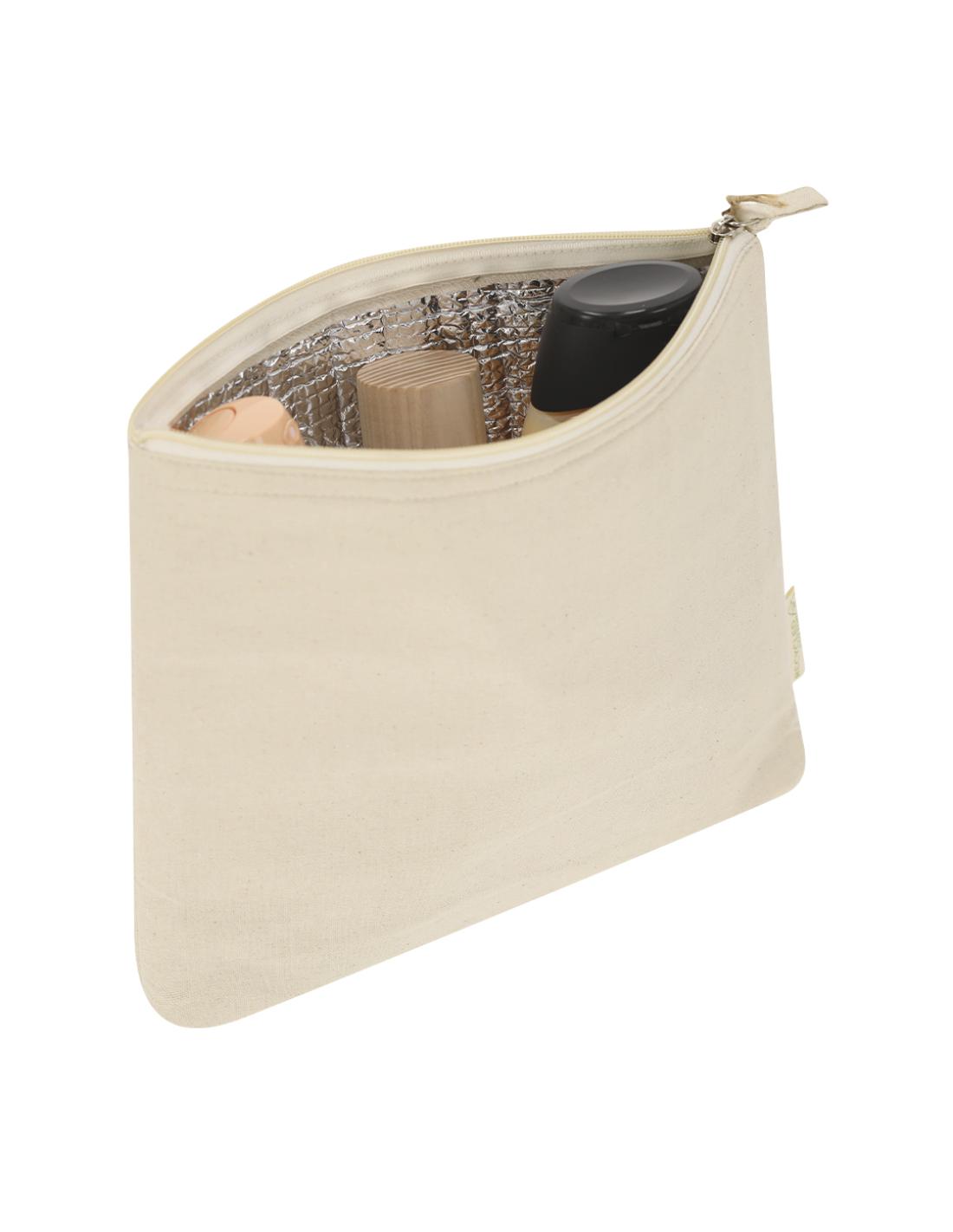 Neceser térmico elaborado principalmente en Algodón Reciclado 170 g/ m2 en elegante tono natural. Compartimento principal con cierre de cremallera, interior con forro isotérmico ideal para conservar tus productos cosméticos, y tirador en tono natural. Incluye etiqueta de Algodón Reciclado.