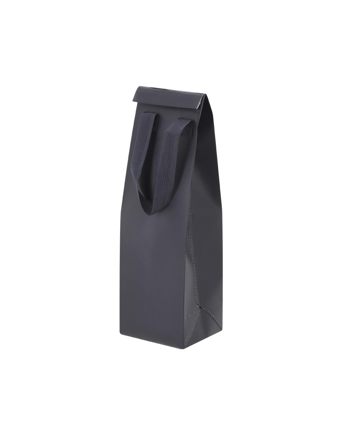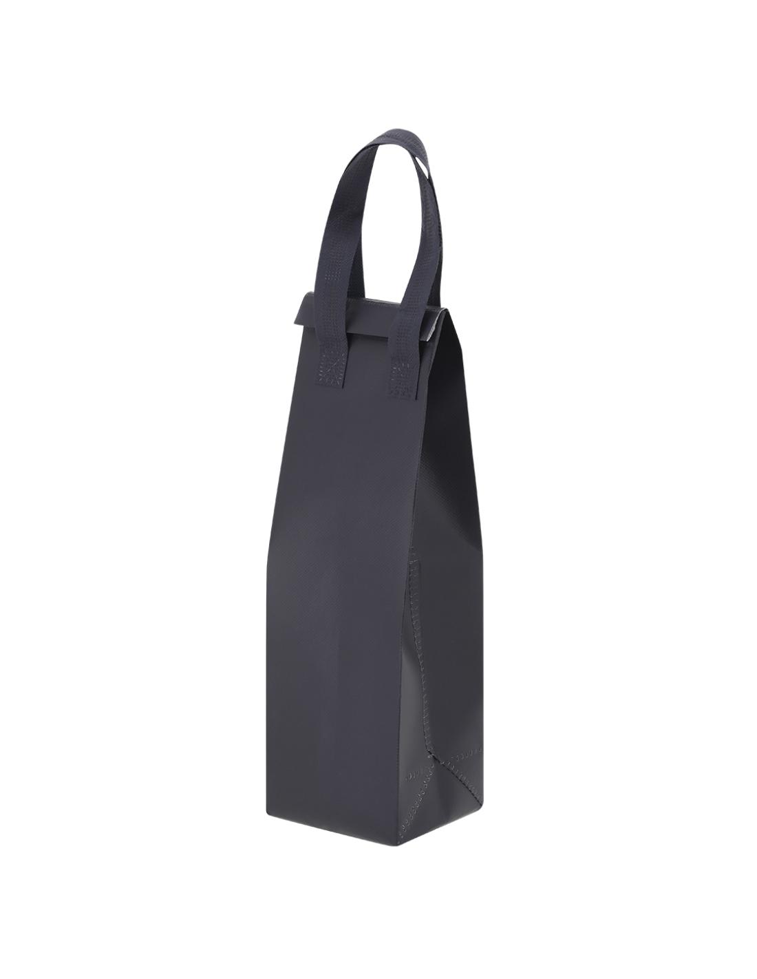 Bolsa nevera en non-woven laminado. Compartimento principal con cierre de velcro e interior isotermico de aluminio. De acabado termosellado, con fuelle lateral y asas reforzadas. Ideal para botellas de vino.