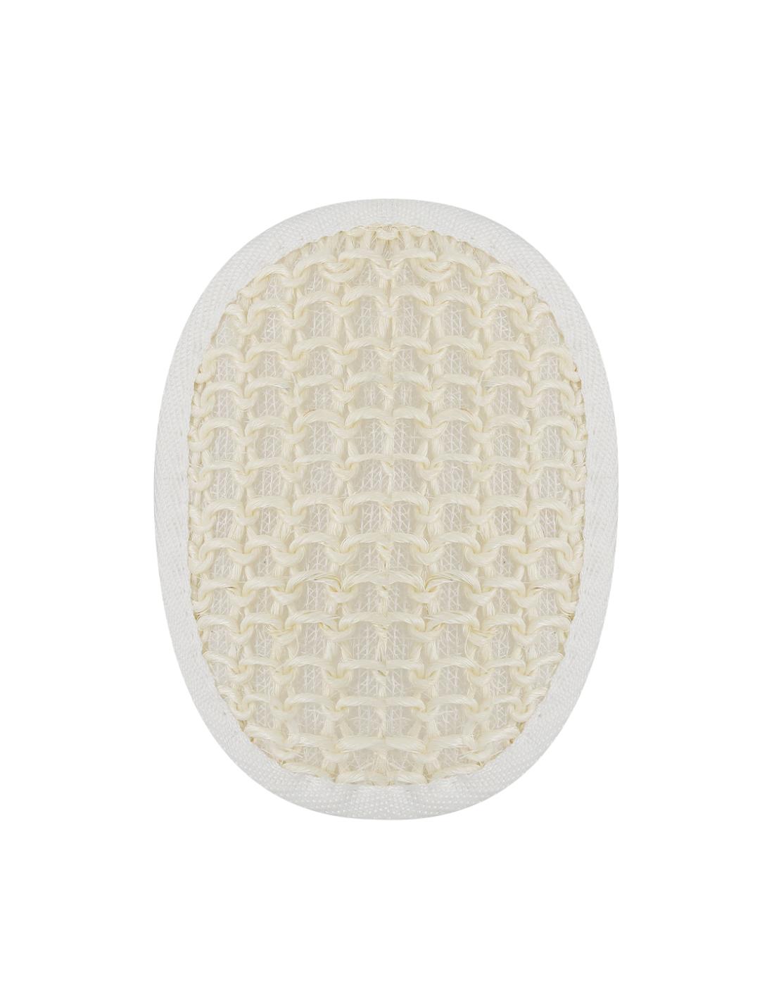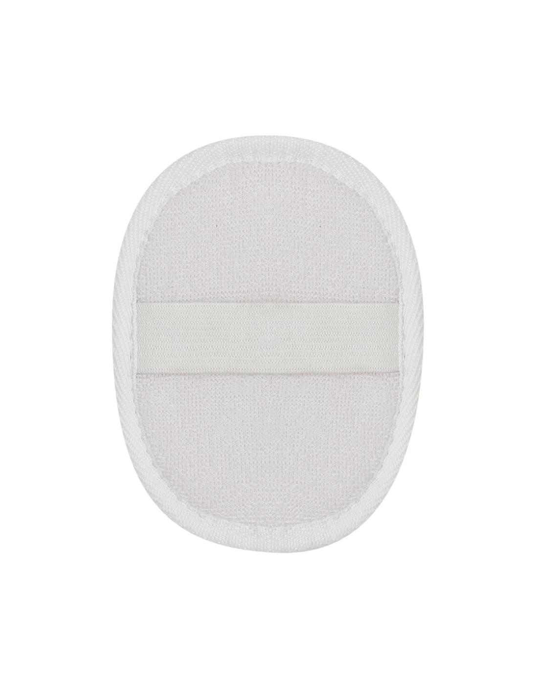 Esponja exfoliante de baño en algodón adaptable a la palma de la mano, con cinta de sujeción a juego.
