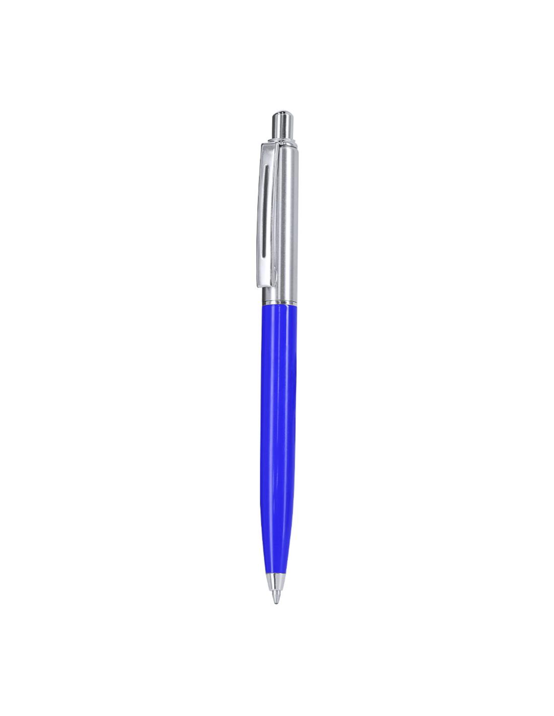 Bolígrafo de acabado metalizado. Con mecanismo pulsador y punta retráctil, clásico cartucho interior en tinta azul. Con clip metalizado y mitad de cuerpo en color sólido brillante.