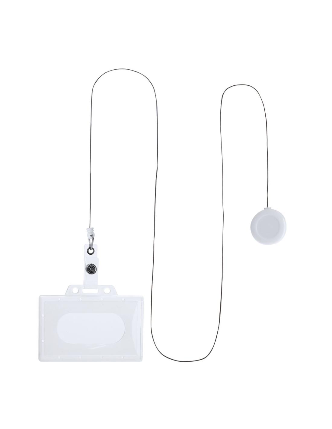 Identificador lanyard extensible. Portatarjetas en rígido PS transparente. Cuerda extensible de hasta 70 cm.