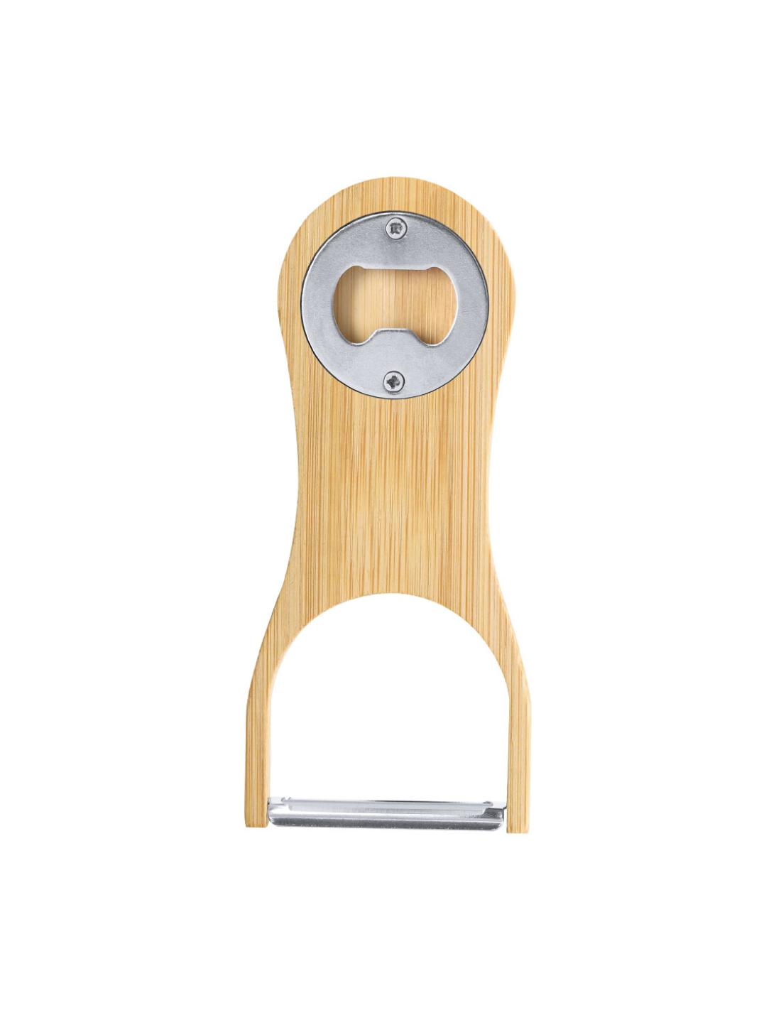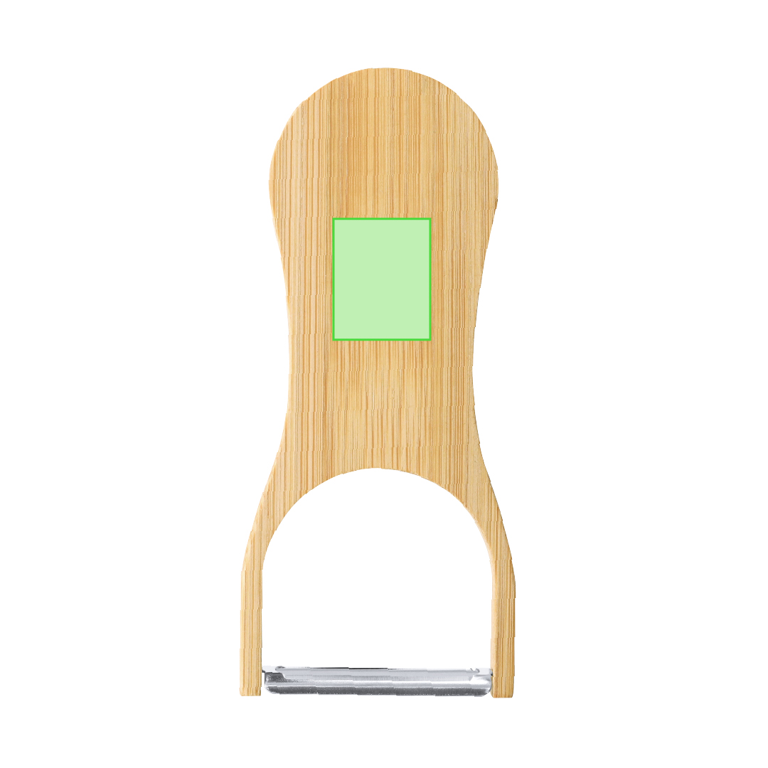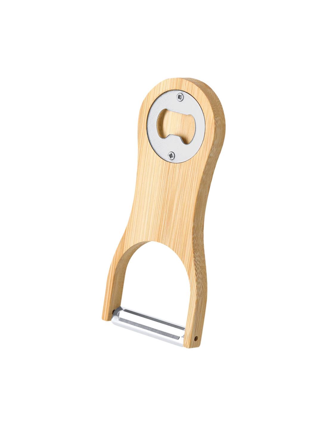 Pelador abridor fabricado en Bambú. En la parte inferior es un práctico y funcional pelador en Acero Inoxidable 420. Y en la parte superior presenta un abridor con acabado metalizado.