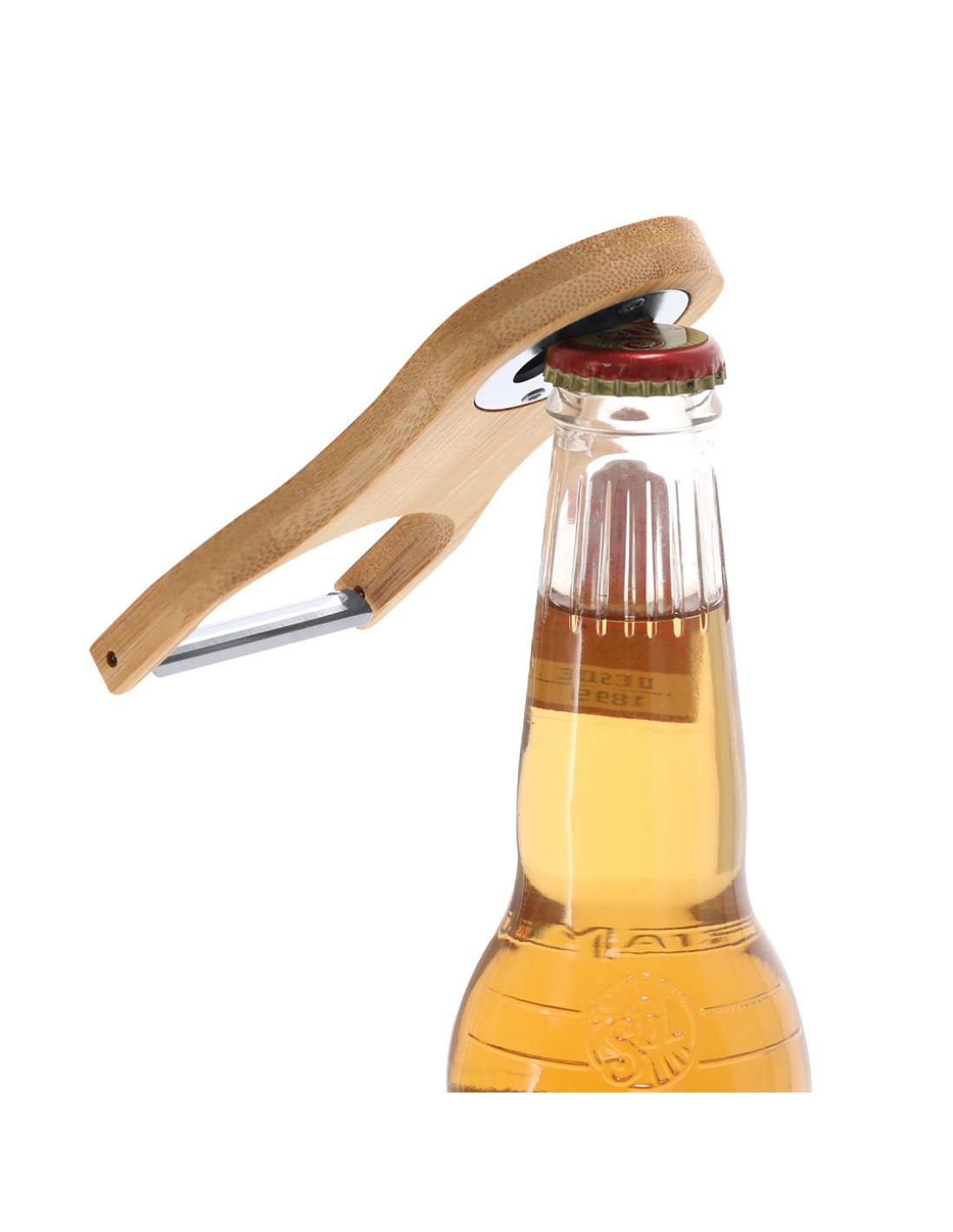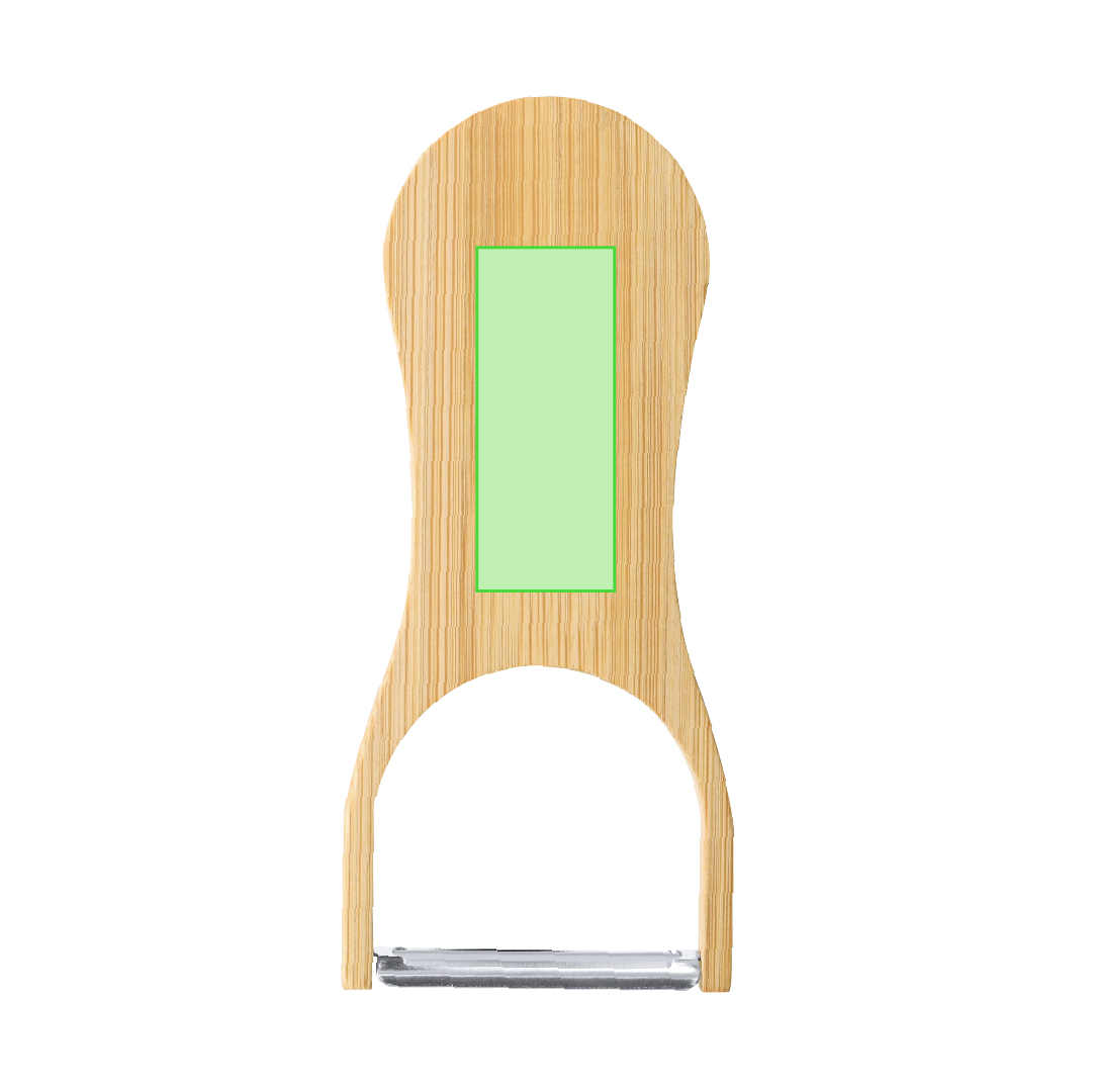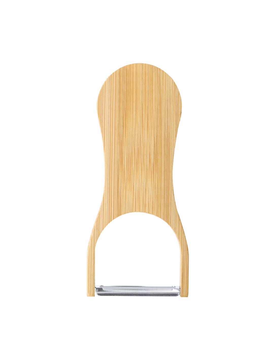Pelador abridor fabricado en Bambú. En la parte inferior es un práctico y funcional pelador en Acero Inoxidable 420. Y en la parte superior presenta un abridor con acabado metalizado.