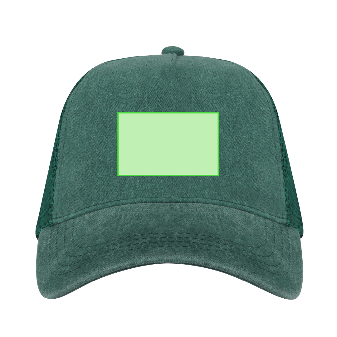 Gorra de 5 paneles de acabado efecto lavado. Fabricada principalmente en suave algodón, parte trasera en tejido de malla en mismo color. Ideal para el día a día gracias a su práctica transpiración. Con cierre plástico trasero ajustable.