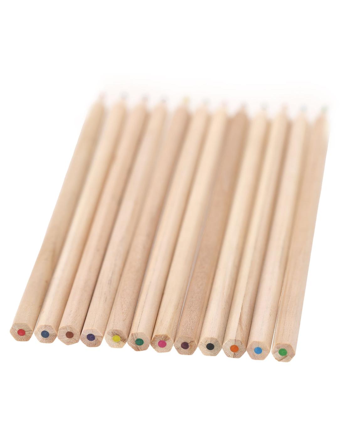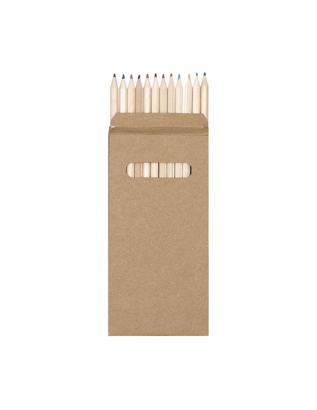 Caja de 12 lápices en caja de cartón reciclada con ventana. Lápices de madera con cuerpo hexagonal con minas en divertidos colores.