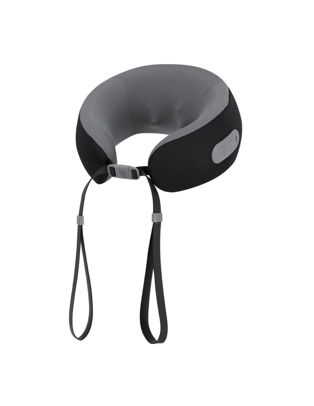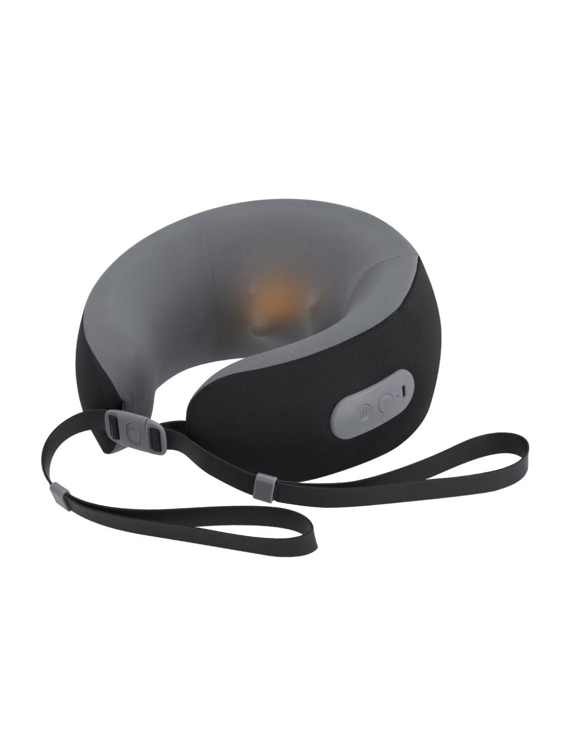 Almohadilla masajeador portátil para cuello. Máxima experiencia de confort para cualquier viaje gracias a la función de masajes. Tiene cierres de hebilla para un correcto y cómodo ajuste. Incluye botón de ON/OFF/SWITCH con indicador de luz. Con funda confeccionada en poliéster para protegerla en el transporte. Equipada con batería recargable de 1.200 mAh, con entrada TipoC.
