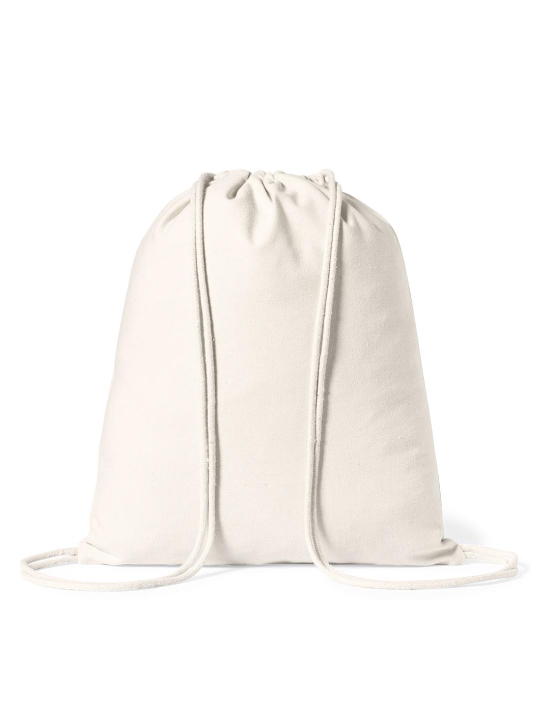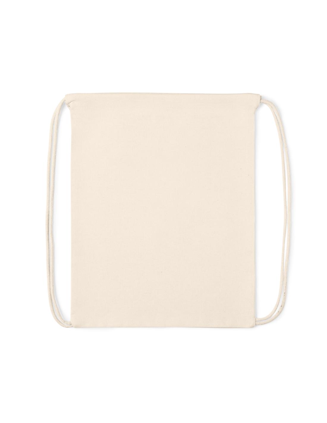 Mochila de cuerdas de línea nature fabricada en 100% algodón de 180g/m2 en acabado natural. Compartimento principal con cordones en algodón.