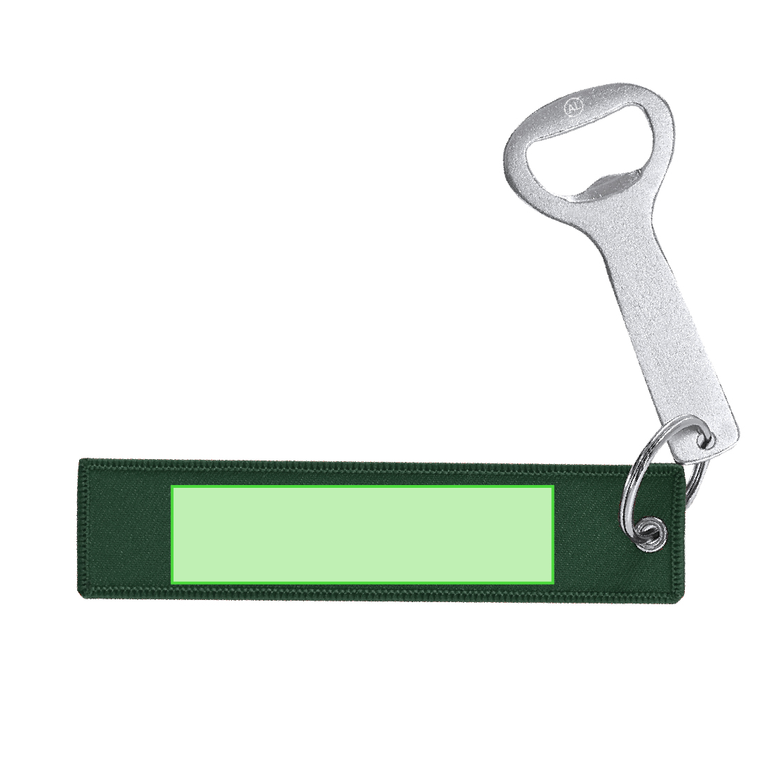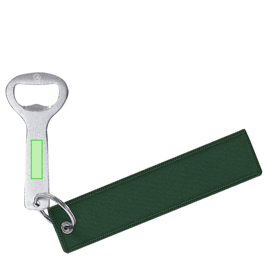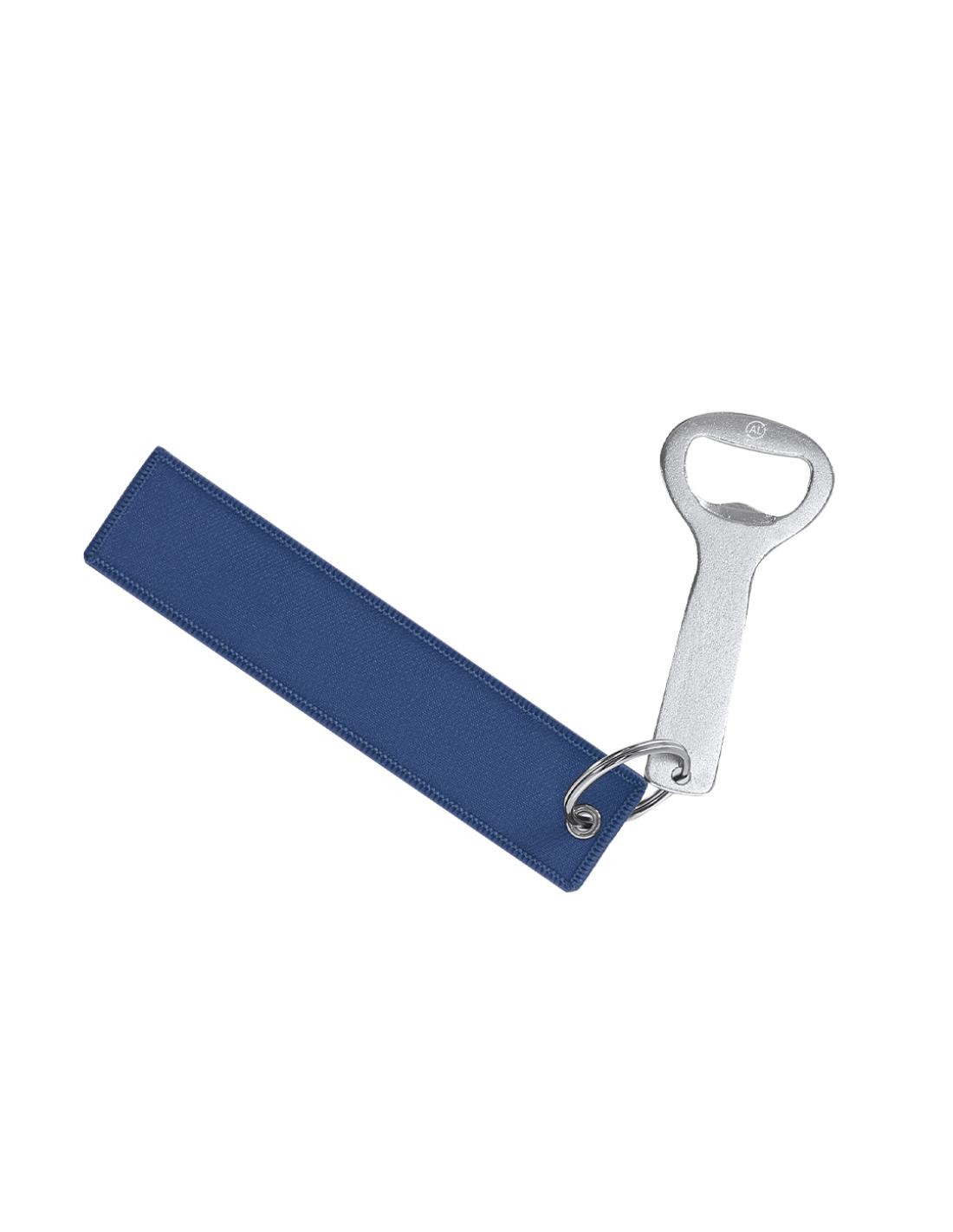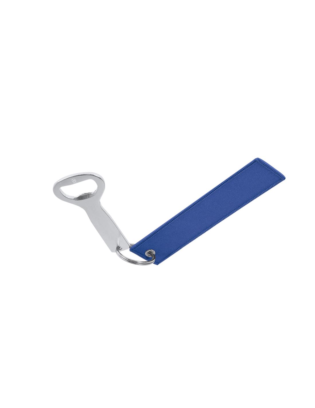Llavero abridor en Aluminio Reciclado con costuras en el borde en color a juego con el cuerpo de poliéster. Incluye dos anillas metálicas en color plateado. Anilla principal incluye abridor clásico con distintivo logo de aluminio Reciclado grabado en el extremo superior.