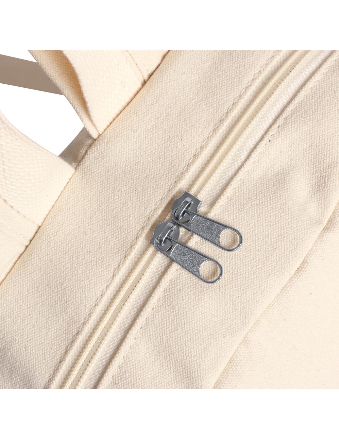 Mochila de línea nature fabricada en 100% algodón orgánico de acabado natural. Compartimento principal con cierre de cremallera a juego y doble tirador. Bolsillo exterior con cierre de cremallera, con espalda y cintas para hombros acolchadas. Etiqueta exterior con distintivo algodón orgánico y tarjeta explicativa en cartón kraft.