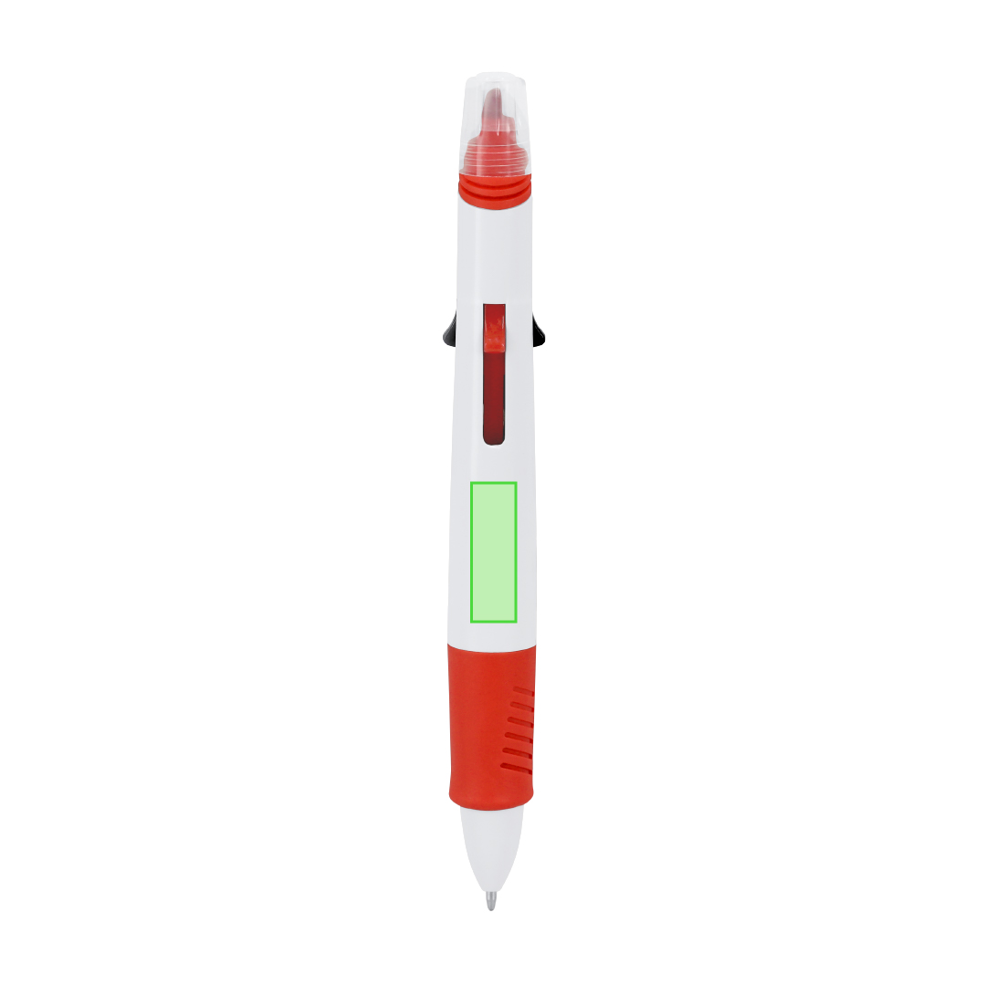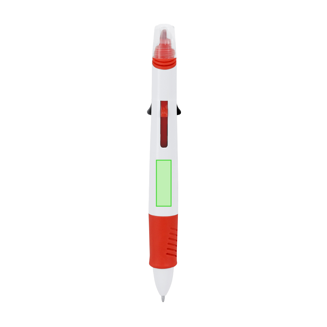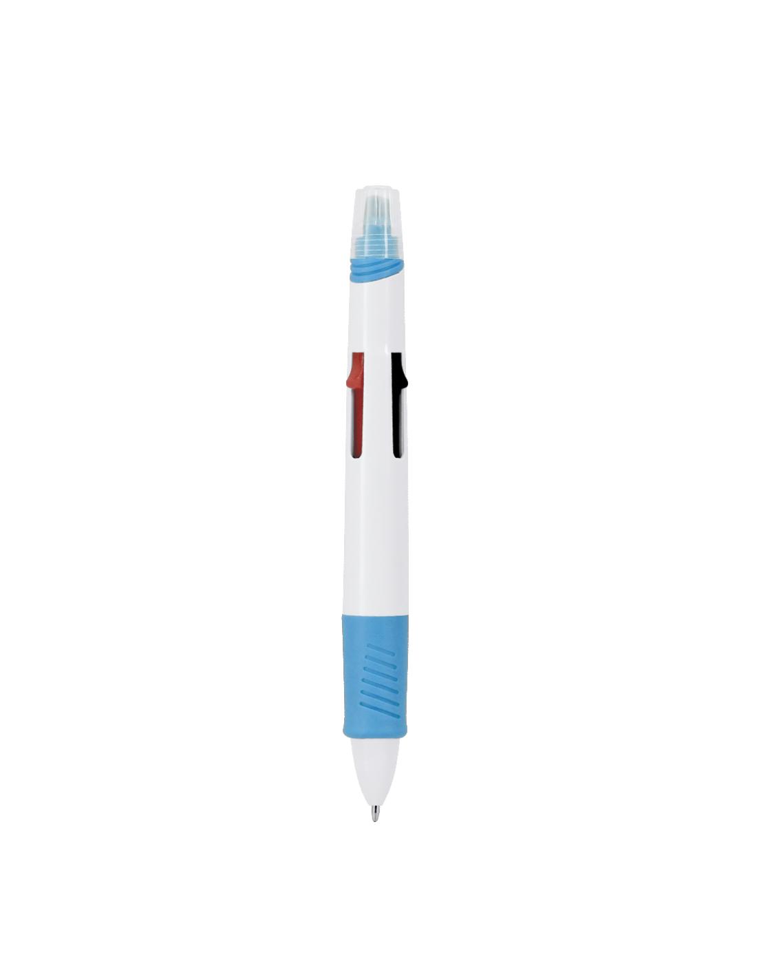 Bolígrafo multicolor con marcador incluido fabricado en ABS. Este instrumento de escritura ofrece una variada paleta de colores en un solo bolígrafo, con una selección de 4 colores diferentes adaptándose a cualquier tarea. Capucha del subrayador translúcida.