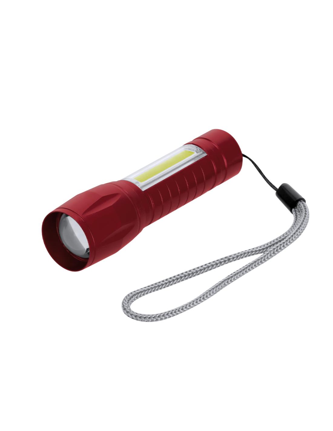 Potente linterna con batería recargable, fabricada en aluminio de acabado en mate. Luz frontal con 8 LEDs y zoom ajustable. Además, cuenta con 10 luces COB en el mango y tres modos de iluminación (fija e intermitente y lateral), incluye cinta de trasporte. Se alimenta mediante una batería recargable de 400 mAh, incluido cable tipo C.