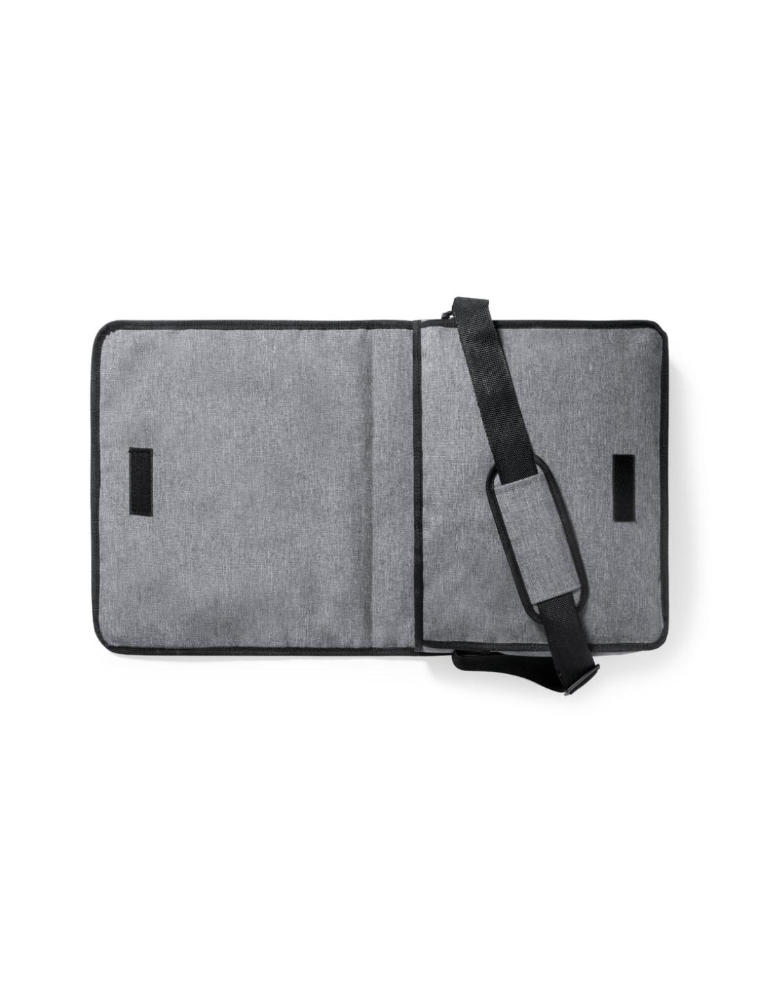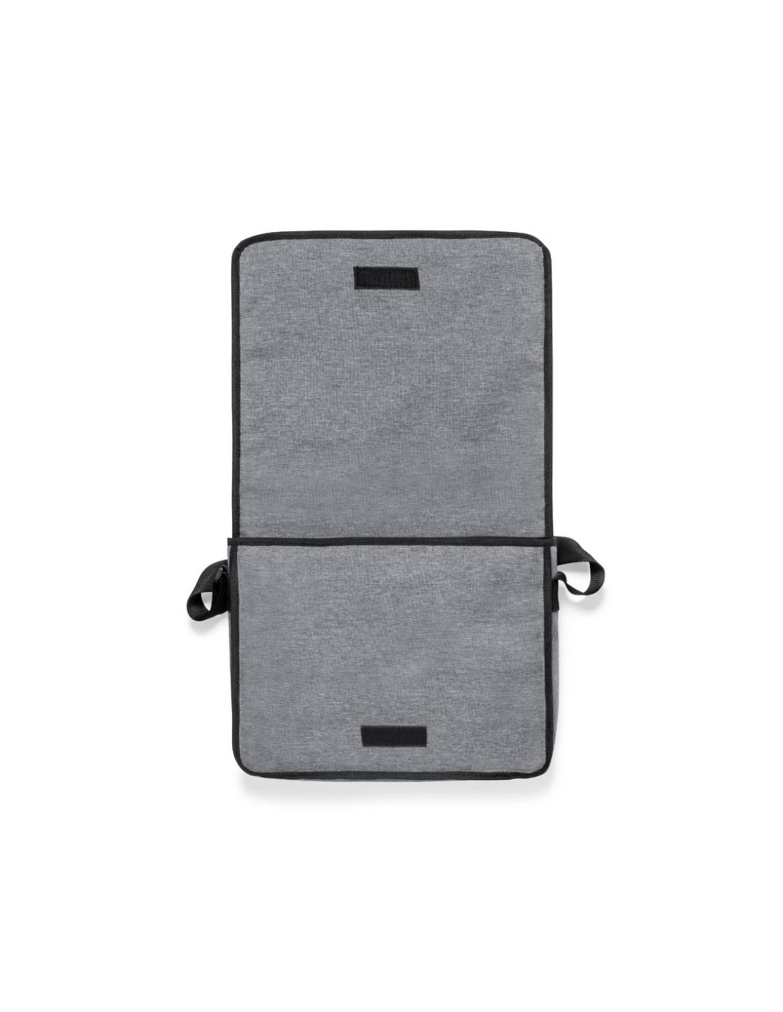 Bandolera fabricada en resistente poliéster 600D RPET. Completamente acolchada, con amplia solapa frontal, cierre de velcro y ribete en negro. Compartimento principal con forro interior, con cinta bandolera ajustable y acolchado para hombro. Con distintivo RPET en etiqueta exterior.El material RPET se elabora a partir de plástico reciclado, para así fomentar la reutilización de residuos plásticos y ayudar a la sostenibilidad del planeta.