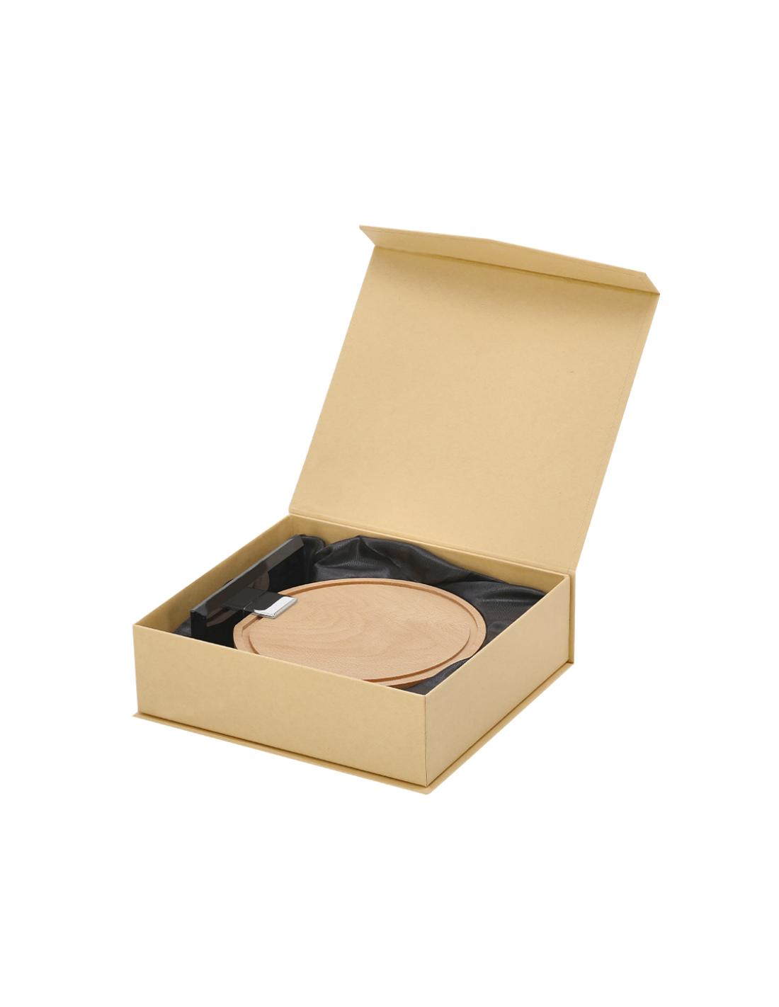 Placa trofeo con diseño redondo fabricada en madera con base en vidrio. Unida mediante pieza metálica plateada. Ideal para regalos personalizados, reconocimientos, premios y decoración.