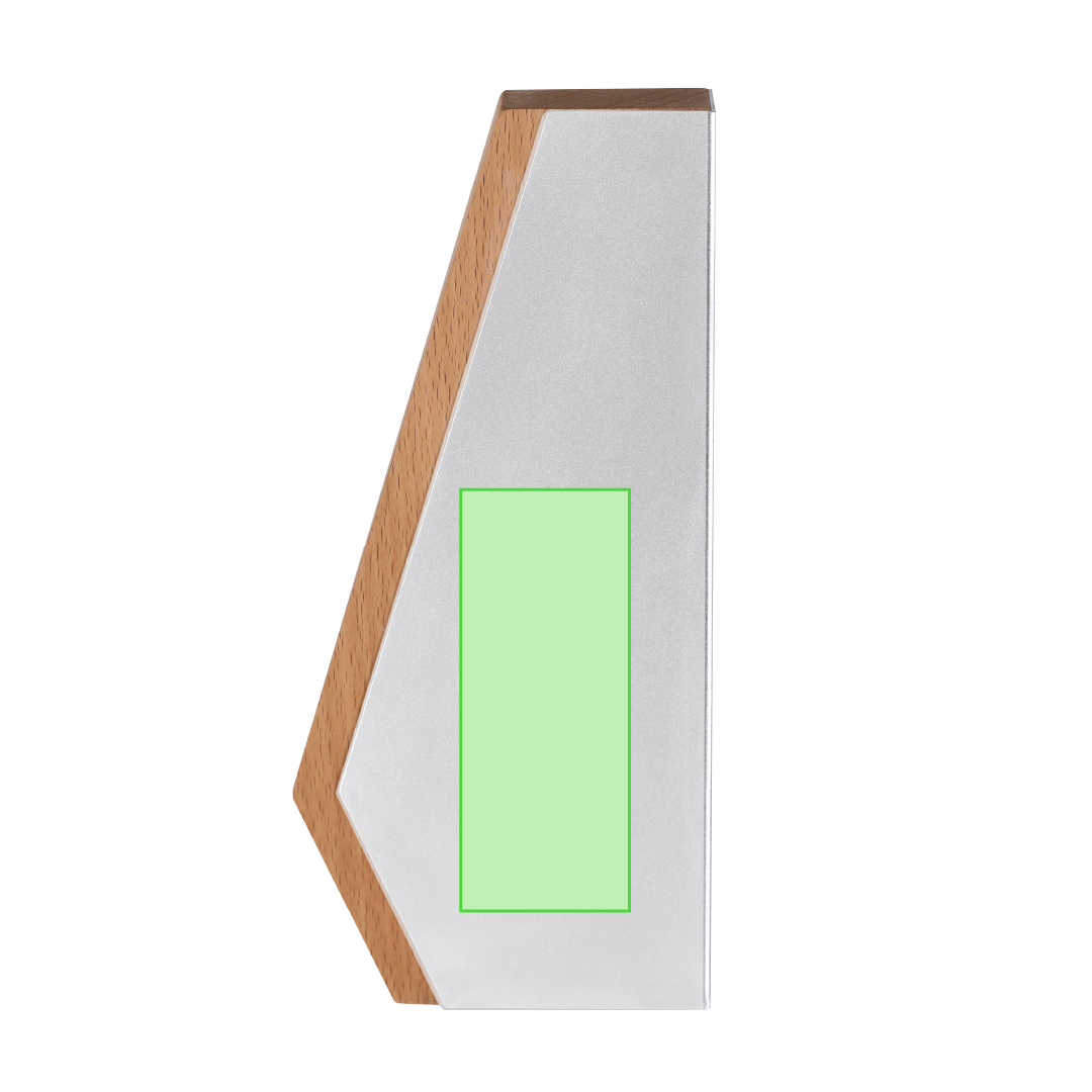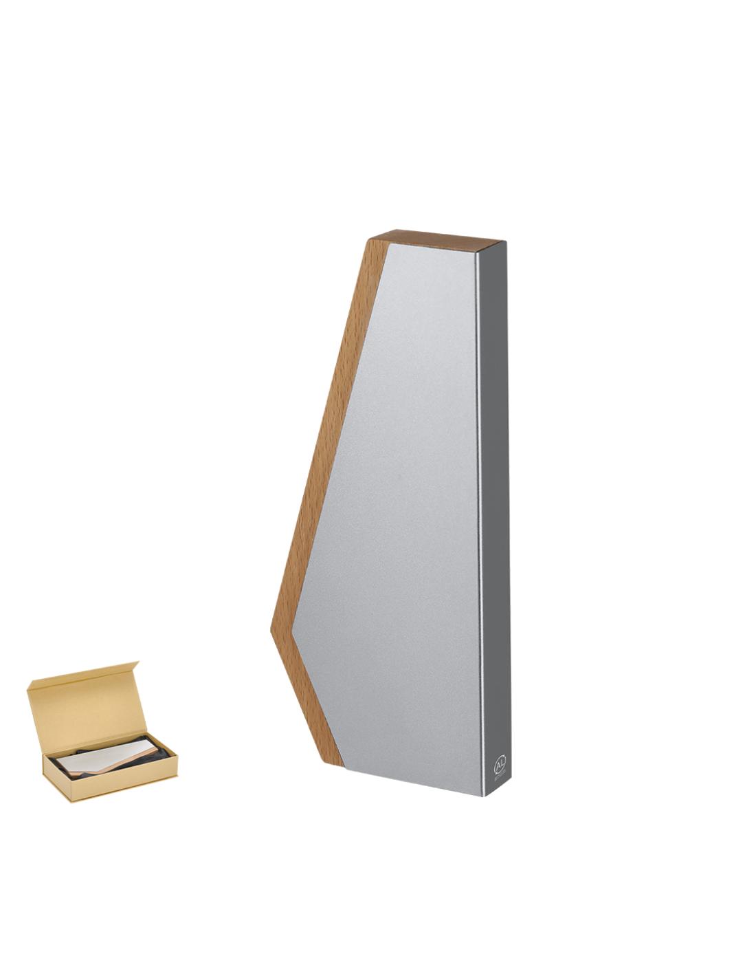 Placa trofeo de elegante e innovador diseño con base en madera. Incluye placa de Aluminio reciclado en la parte frontal. Ideal para regalos personalizados, reconocimientos, premios y decoración. Con distintivo logotipo de Aluminio Reciclado.