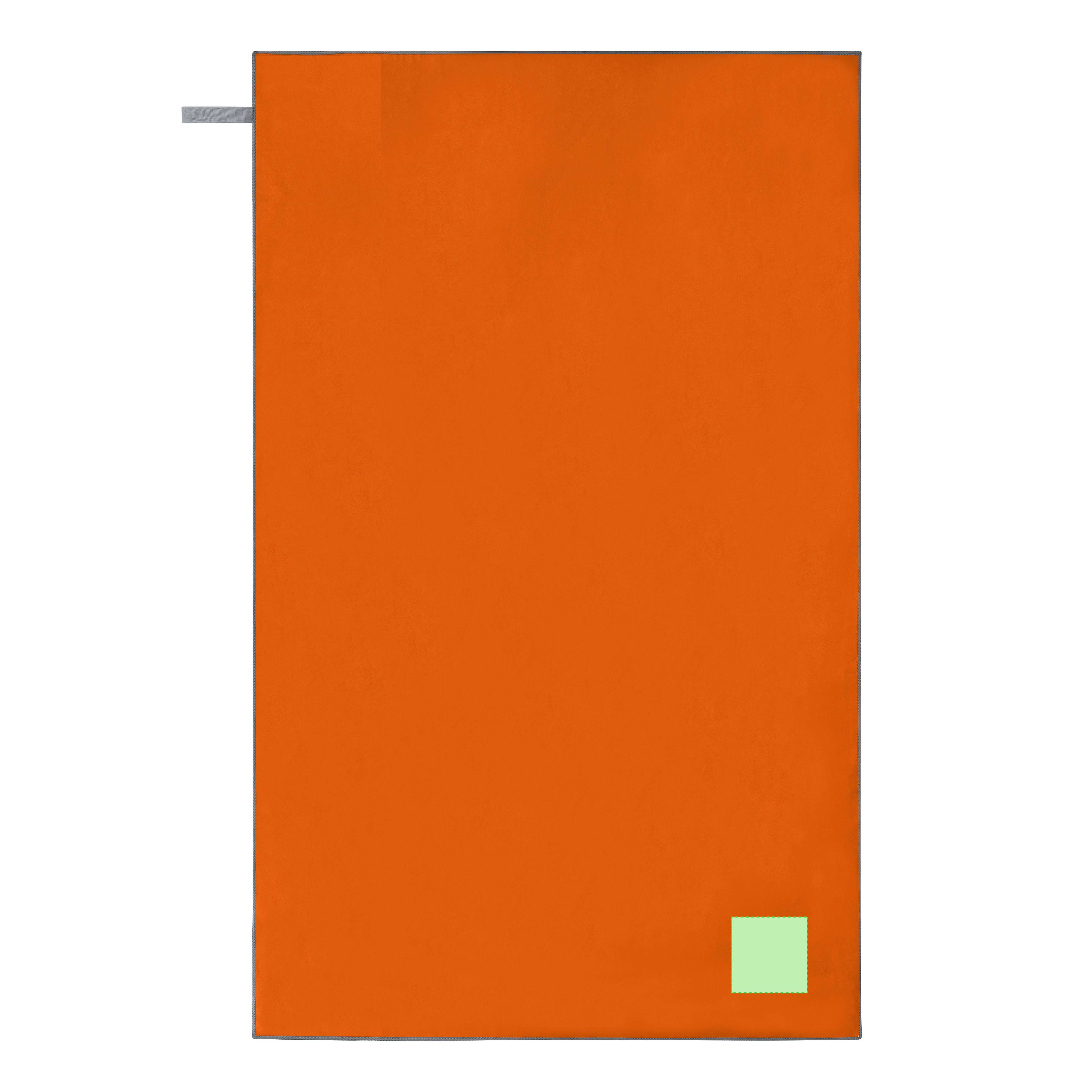 Toalla de 130x80cm ultra absorbente confeccionada en RPET de 200 g/m2. Dispone de cinta elástica para cuando se pliega poder guardarla, presentada en bolsa de poliéster RPET para fácil transporte. Con distintivo logotipo RPET.