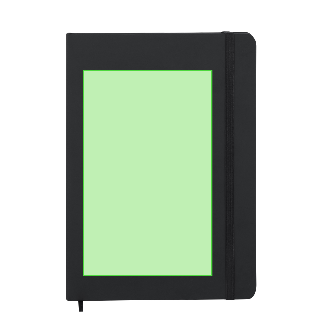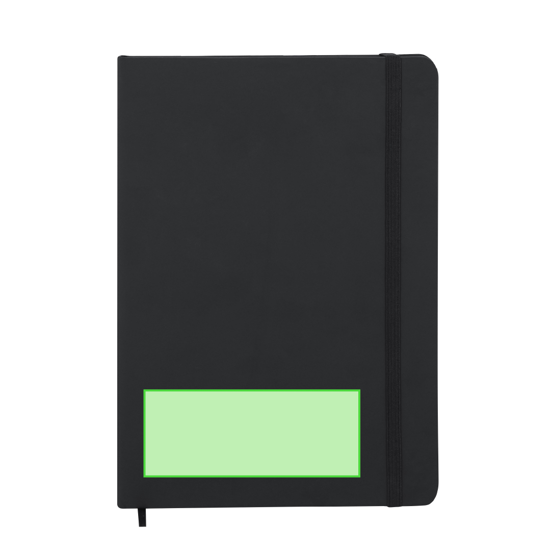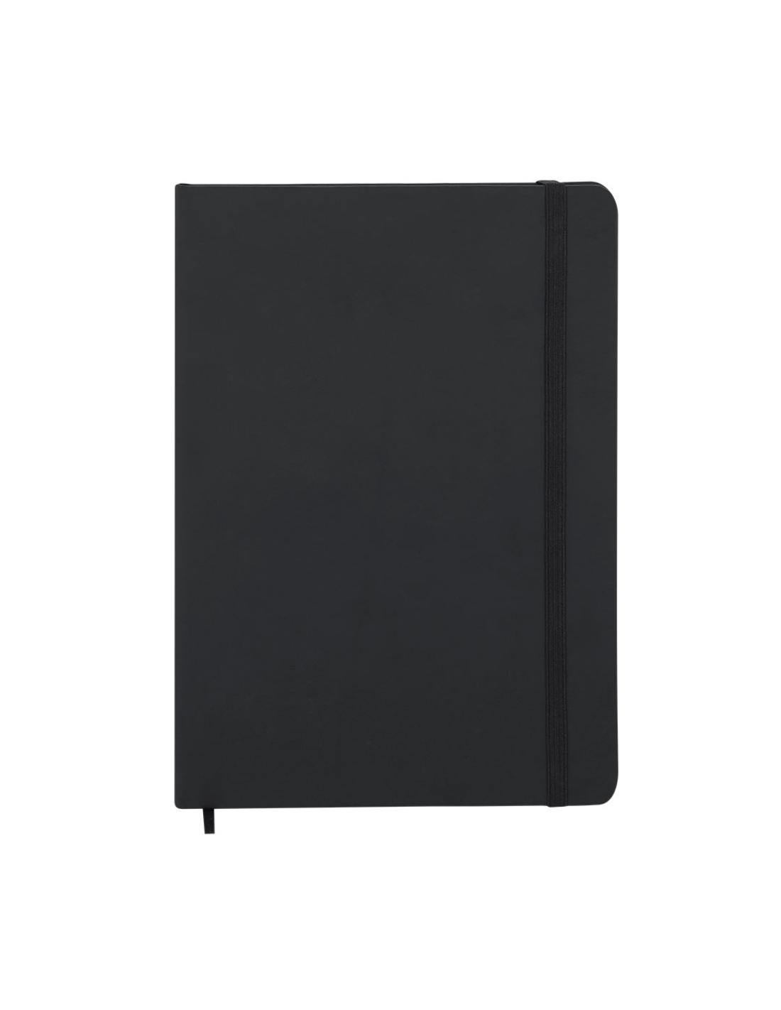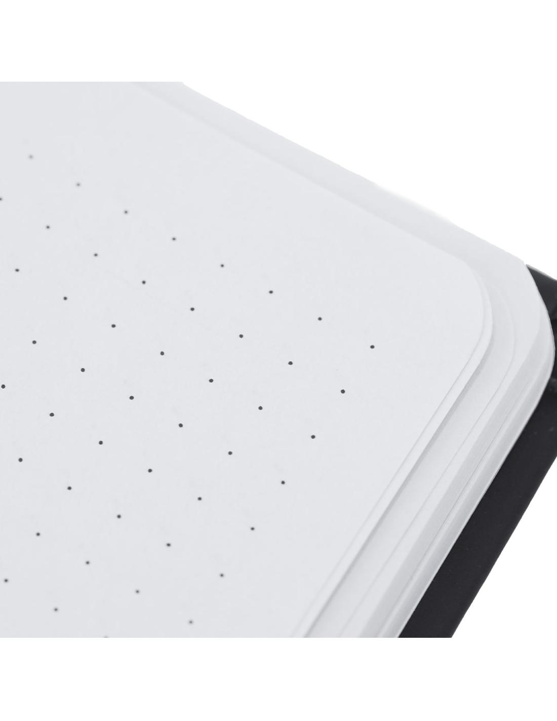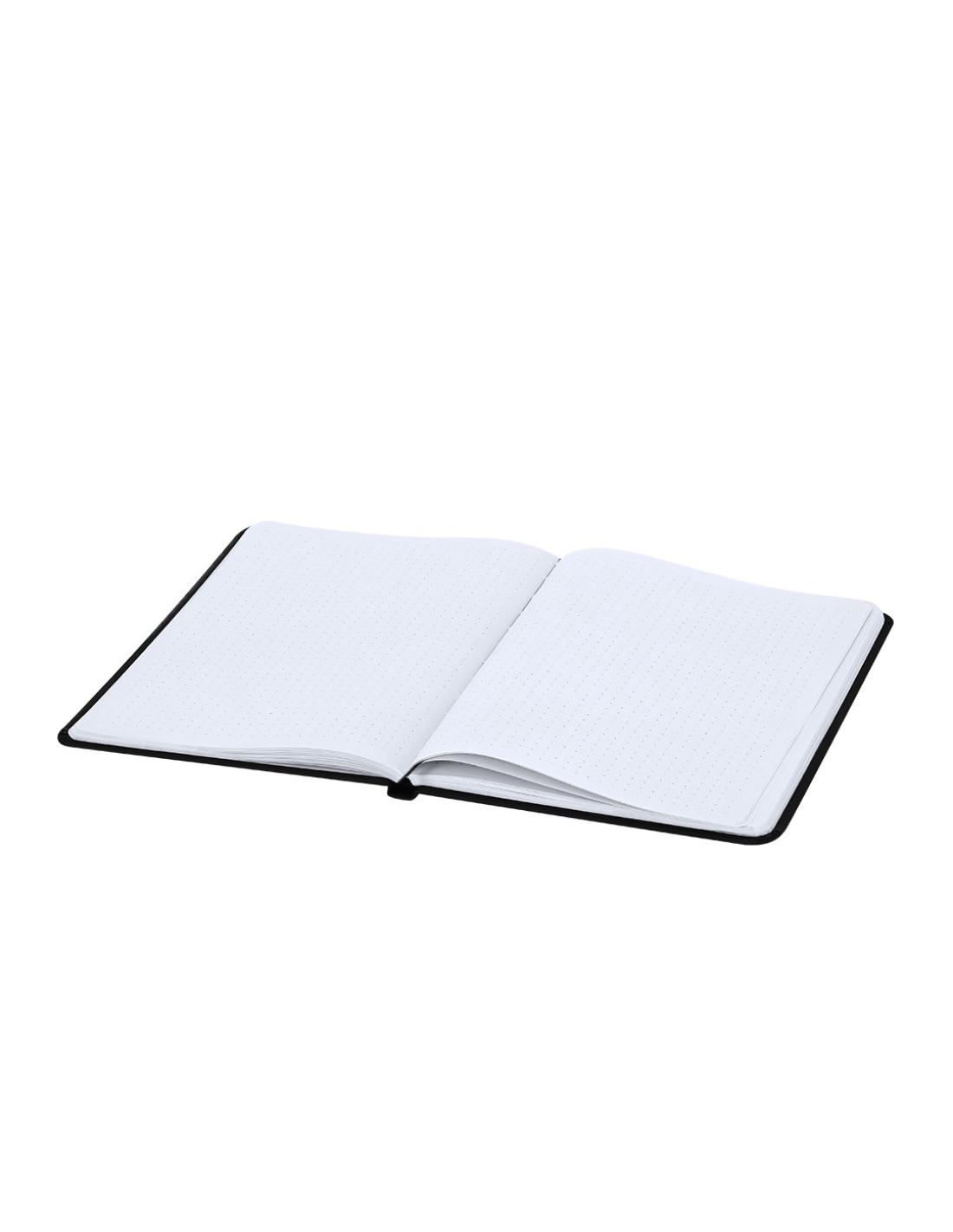 Bloc con notas confeccionado en elegante PU. Con tapas rígidas y 96 hojas con diseño punteado. Incluye cinta marcapáginas y cinta elástica en cubierta para cierre seguro.