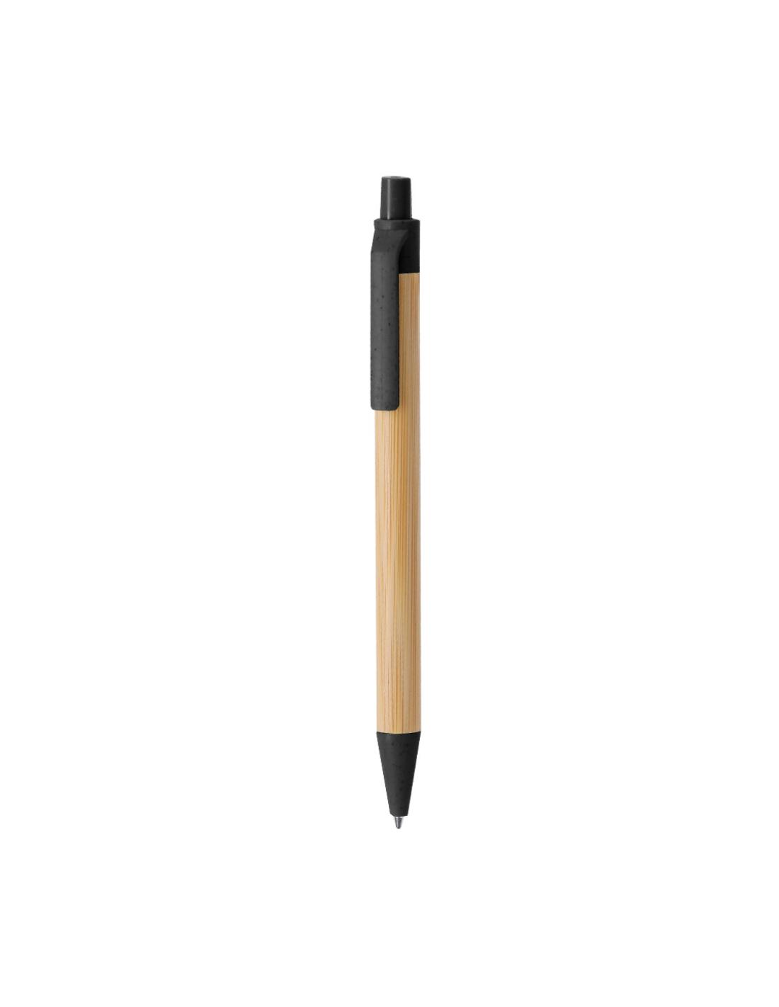 Bolígrafo fabricado en bambú en combinación con caña de trigo. De mecanismo pulsador y tinta azul. Incluye distintivo Wheat Straw.
