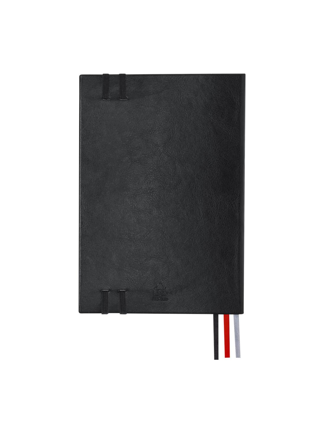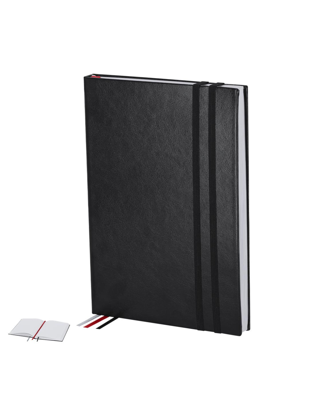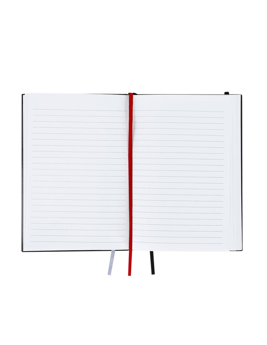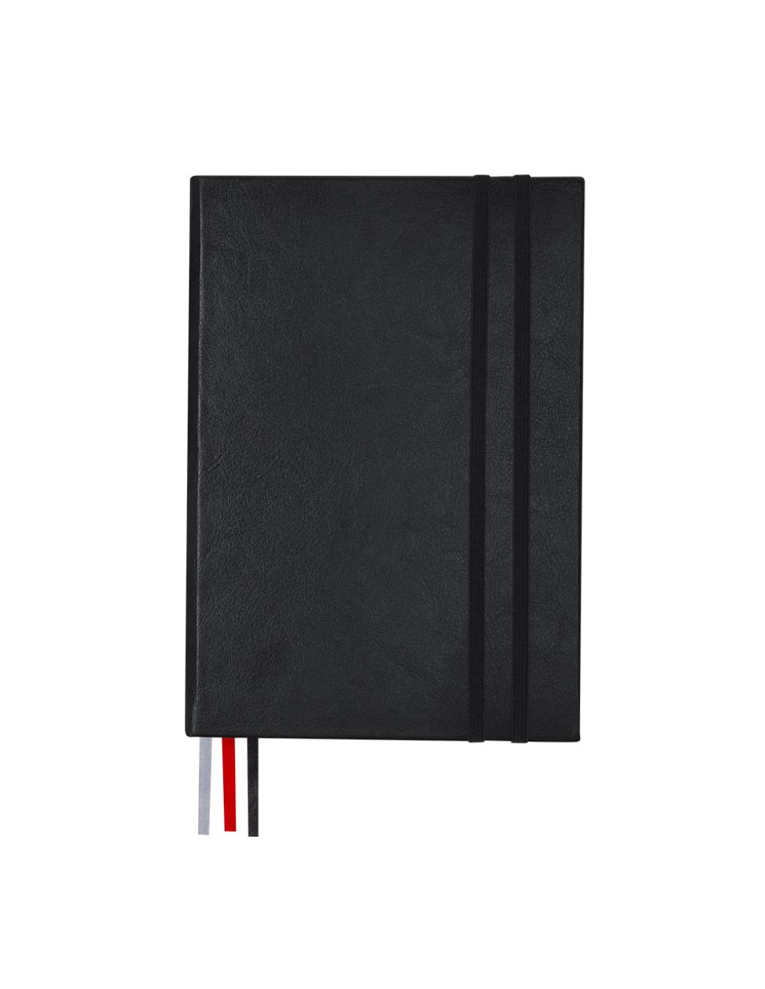 Bloc de notas en tamaño A5 con cubiertas rígidas y suaves, elaborado en PU reciclada y RPET. Marcapáginas en cinta en tres colores diferentes (negro, rojo y gris) para fácil planificación del día a día y doble cinta elástica de cierre a juego. Incluye 128 hojas color blanco con disposición a rayas y un práctico bolsillo de papel para notas sueltas. Ideal para llevar un diario y mantener la planificación durante todo el año. Con distintivo de PU Reciclado.La PU Reciclado destaca por su resistencia y elasticidad. Este material reciclado y reciclable es una opción sostenible que rescata las fibras desechadas en los procesos de fabricación, minimizando así el desperdicio de material y contribuyendo a su vez a reducir el impacto ambiental, manteniendo a la vez sus propiedades originales.