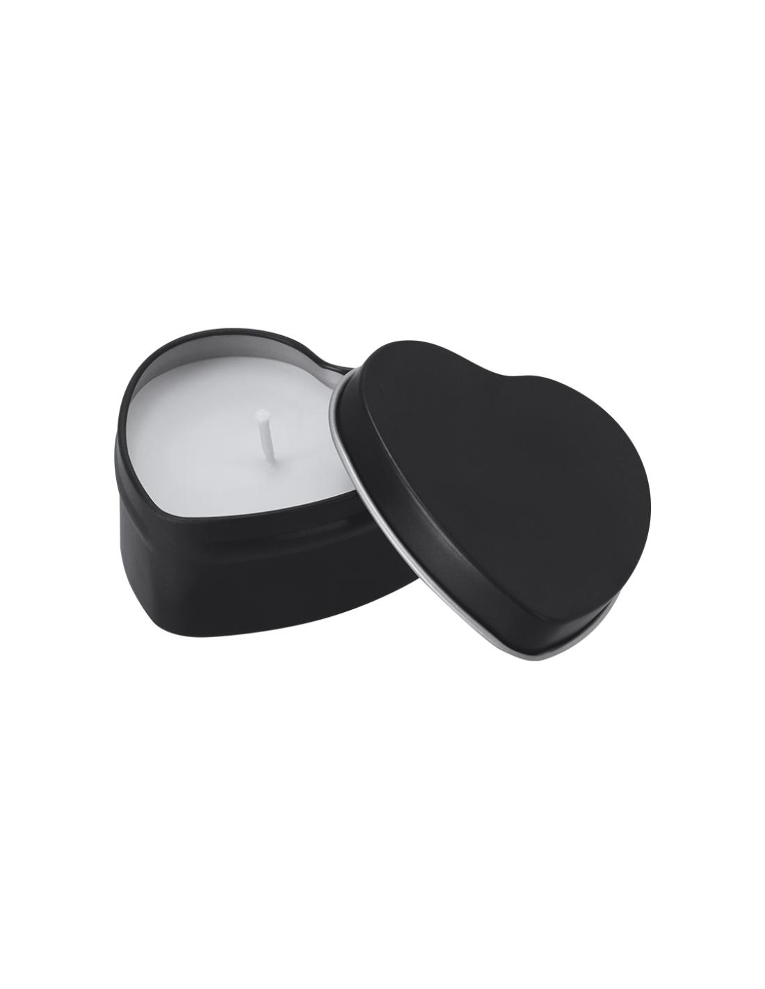 Original vela aromática en cajita de metal con forma de corazón, con aroma a vainilla.