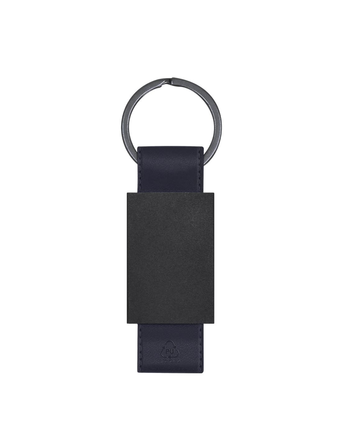 Llavero de divertido diseño con cinta de PU reciclado. Con cuerpo negro en acabado mate.