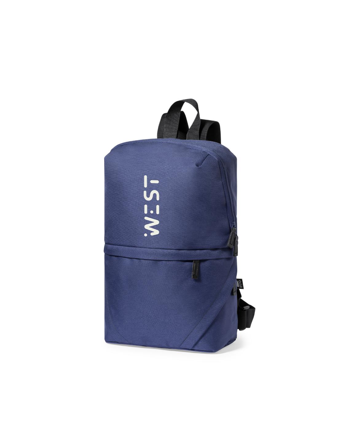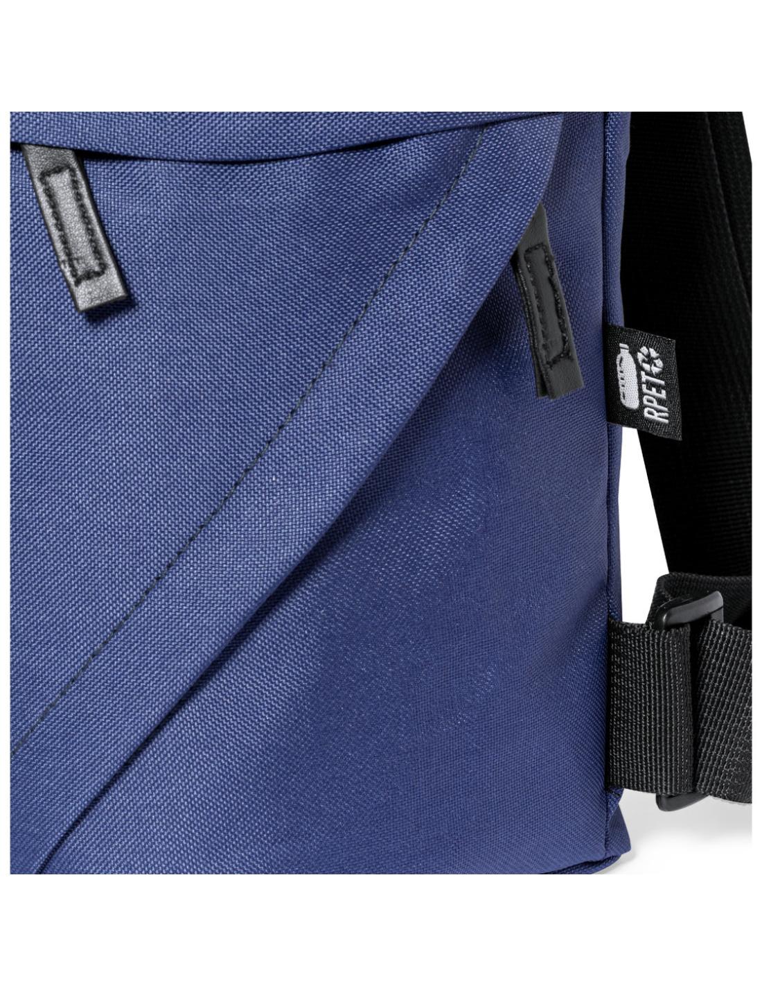 Mochila fabricada en resistente poliéster 600D RPET. Compartimento principal con cierre de cremallera invisible, doble bolsillo exterior y cintas para hombros ajustables. Disponible en variada gama de colores, con distintivo RPET en etiqueta exterior. El material RPET se elabora a partir de plástico reciclado, para así fomentar la reutilización de residuos plásticos y ayudar a la sostenibilidad del planeta.