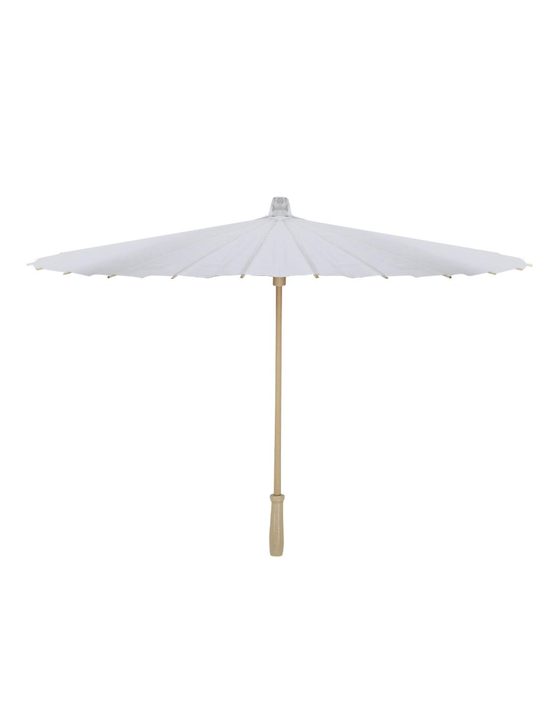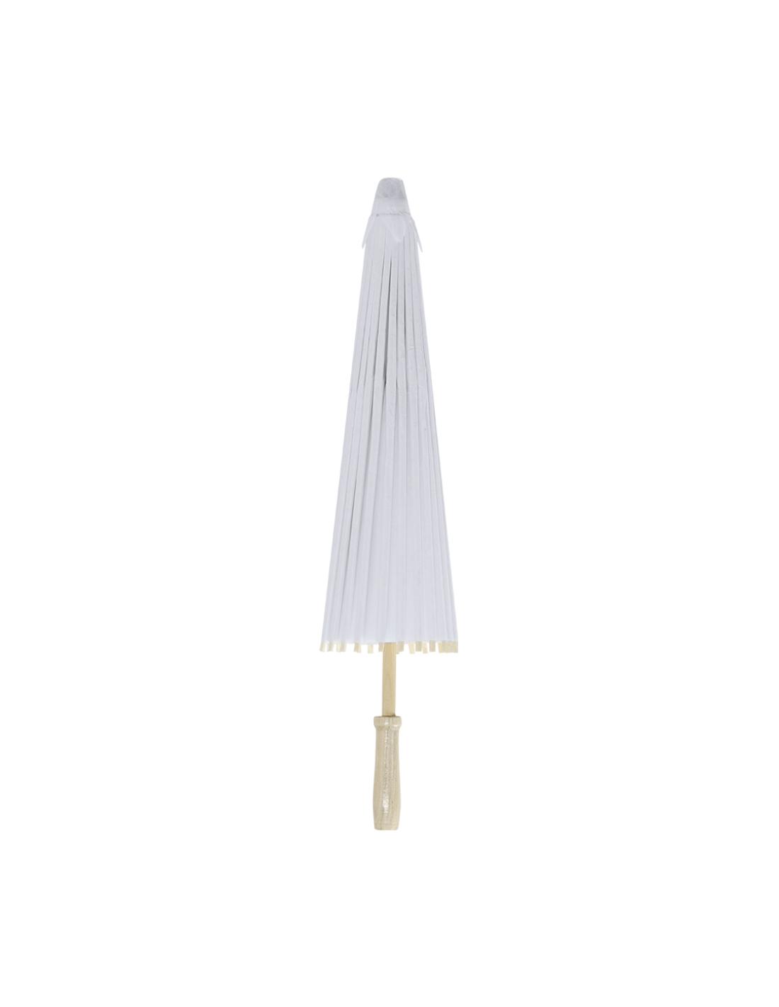 Original sombrilla de madera y tela en papel. Con mango en madera natural en acabado brillante. Sistema de apertura y cierre manual, con diámetro de 58 cm las varillas están fabricadas en madera. Ideal para eventos al aire libre.Elaborado con elementos vegetales para así fomentar la utilización de materias primas naturales y reducir las emisiones contaminantes.