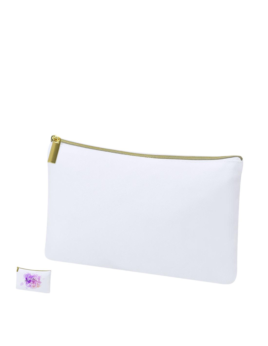Neceser confeccionado en poliester. Compartimento principal con cierre de cremallera dorada con tirador a juego. Diseño especial para sublimación.
