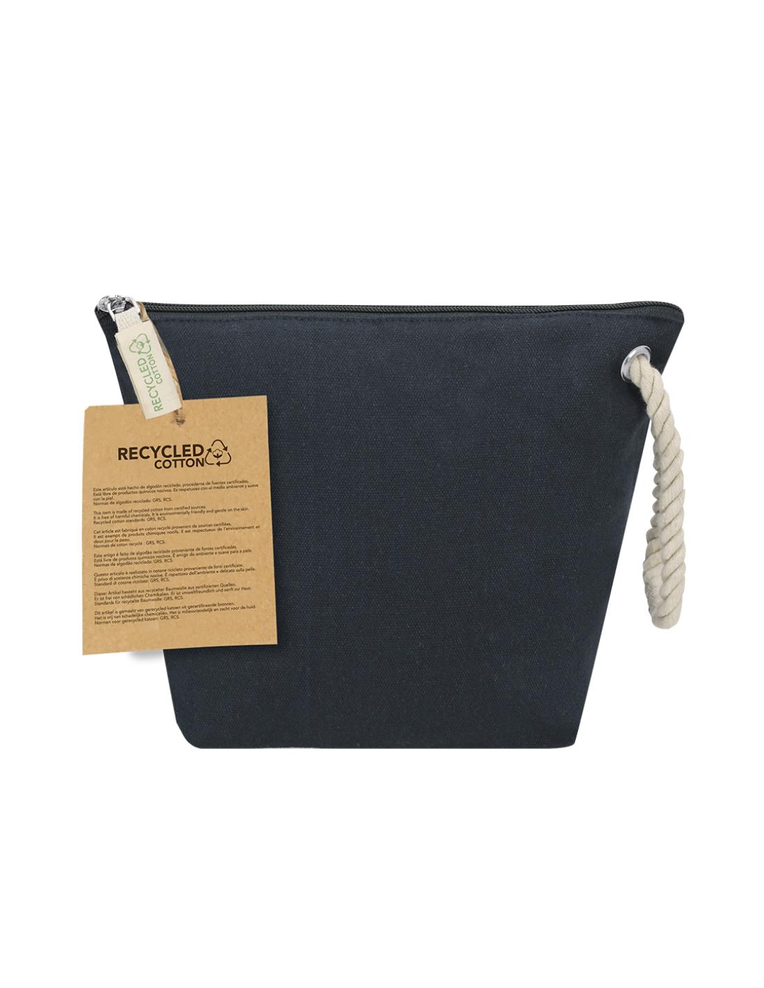 Neceser fabricado principalmente en algodón reciclado 240 g/ m2. Compartimento principal con cierre de cremallera. Con original cordón para fácil transporte unido mediante una argolla plateada. Incluye etiqueta exterior con logotipo algodón reciclado.