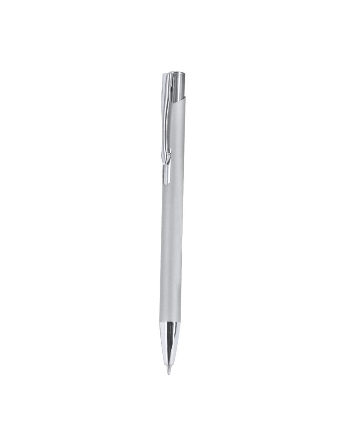 Bolígrafo de mecanismo pulsador. Acabado en aluminio reciclado gomoso, de cartucho jumbo y tinta azul. Diseño especial para grabado láser con resultado en efecto espejo.Con distintivo logo de Aluminio Reciclado.