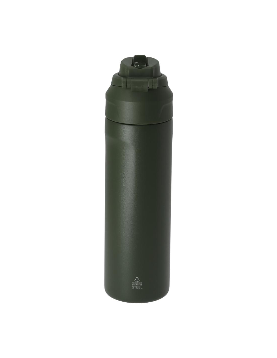 Bidón térmico con 700 ml de capacidad. Fabricado en Acero Inoxidable Reciclado. Cuenta con doble pared y dos sistemas de bebida: orificio con cierre hermético con apertura en push y pajita integrada, adaptándose a las preferencias de uso. Con tapa de sistema de sellado hermético. Incluye práctica asa de transporte integrada, ideal para llevarlo fácilmente en cualquier situación. Libre de BPA. Con distintivo Acero Inoxidable Reciclado.