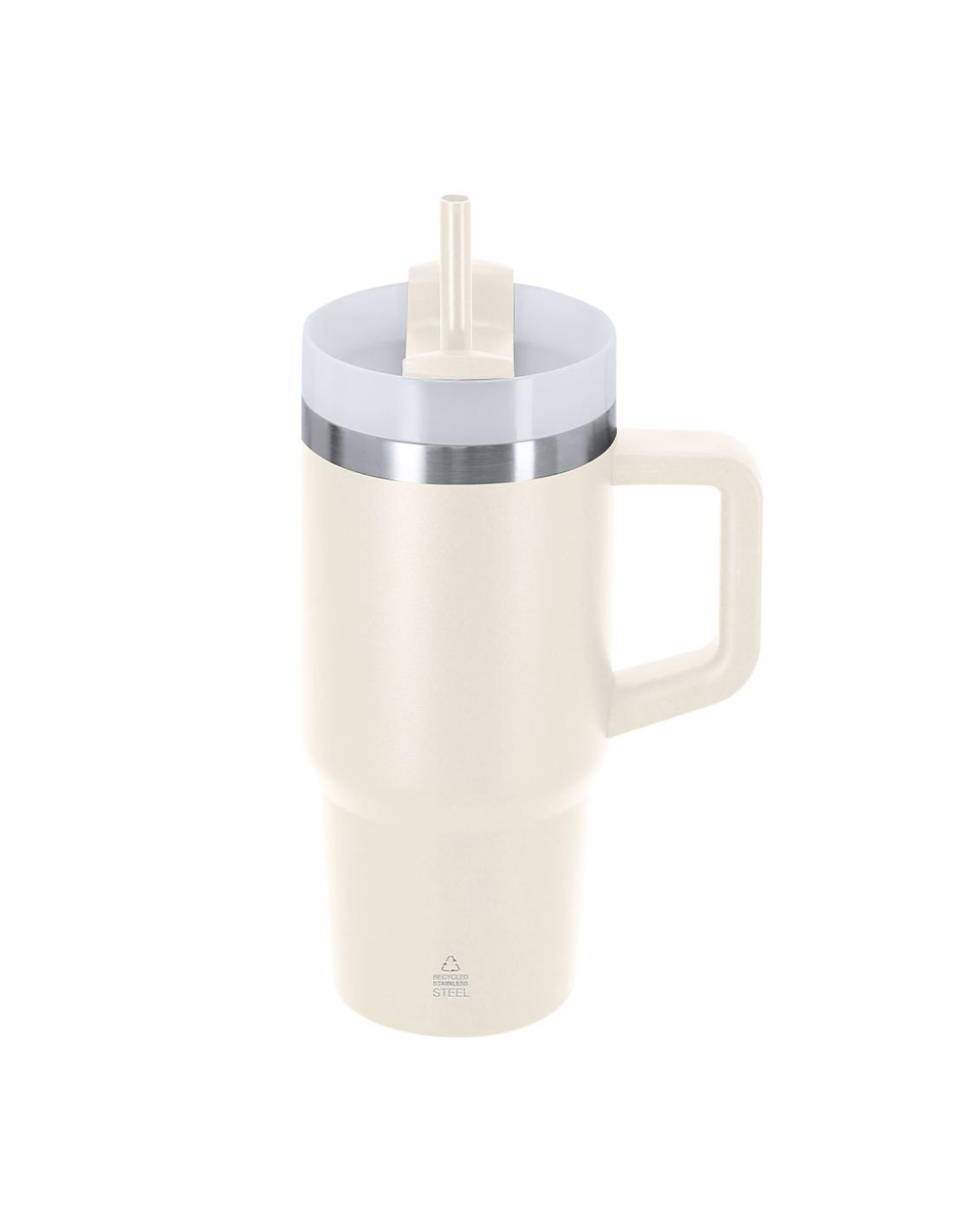 Taza térmica en Acero Inox Reciclado de doble pared y 450 ml de capacidad. Incluye tapadera con sistema de cierre a presión translúcido y con orificio para beber y tapa deslizante para pajita. Es ideal para tener en tu escritorio, mesa o en cualquier superficie donde disfrutar tranquilamente de tu bebida favorita. Incluye distintivo de Acero Inox Reciclado.