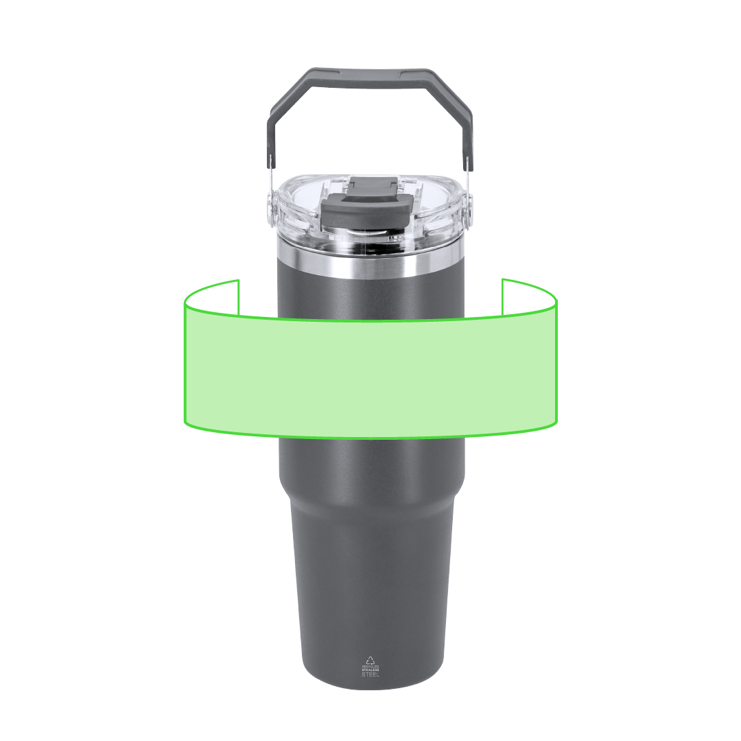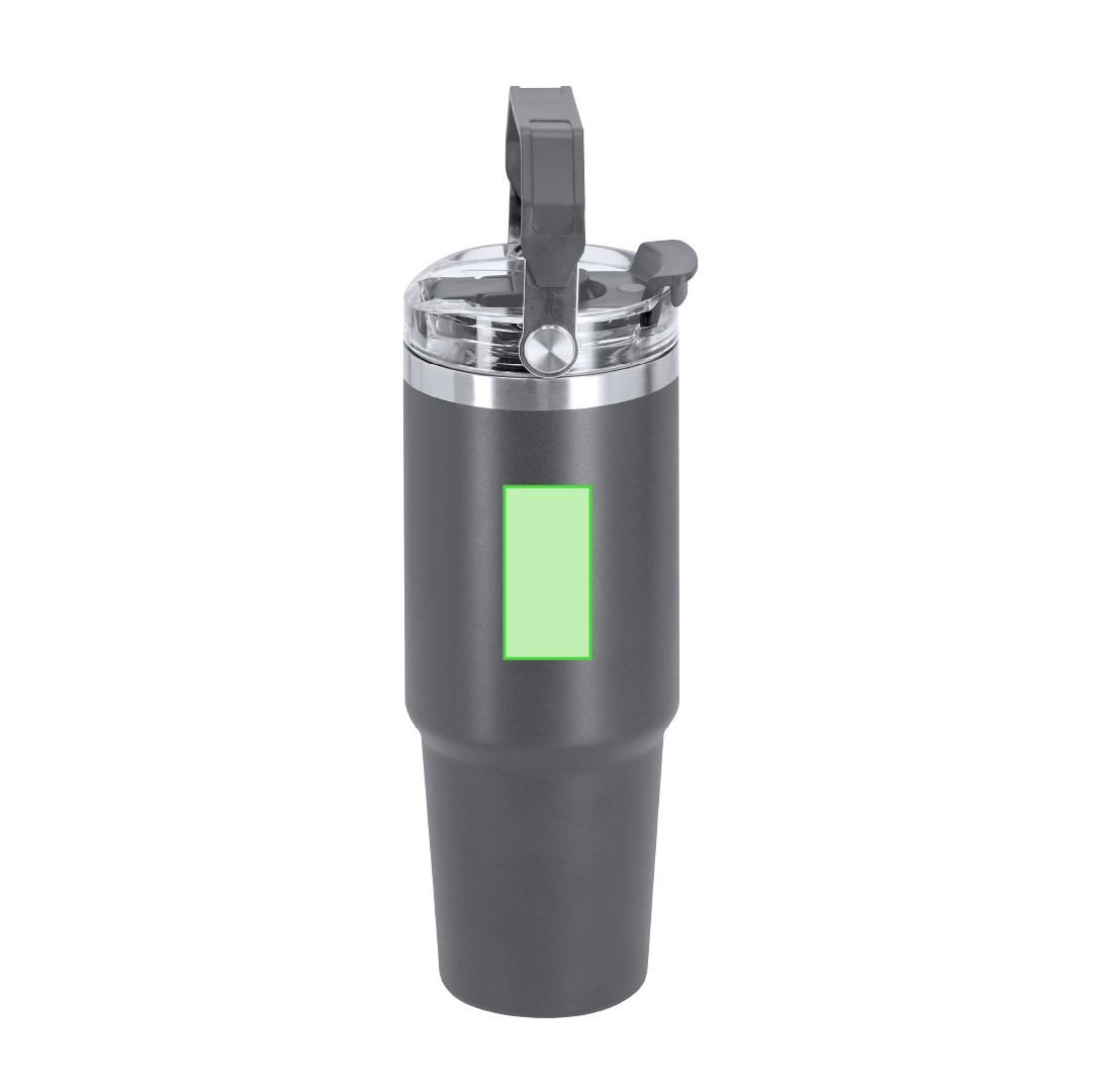 Vaso térmico con 900 ml de capacidad con doble pared. Fabricado en Acero Inoxidable Reciclado. Cuenta con doble sistema de bebida: orificio con cierre hermético y pajita integrada, adaptándose a las preferencias de uso. Con tapa de sistema de sellado hermético. Incluye práctica asa de transporte, ideal para transportarlo fácilmente en cualquier situación. Libre de BPA. Con distintivo de Acero Inoxidable Reciclado.