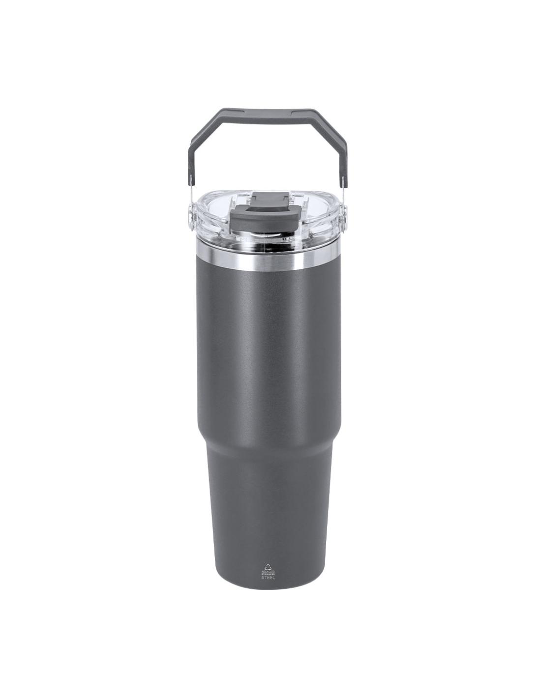 Vaso térmico con 900 ml de capacidad con doble pared. Fabricado en Acero Inoxidable Reciclado. Cuenta con doble sistema de bebida: orificio con cierre hermético y pajita integrada, adaptándose a las preferencias de uso. Con tapa de sistema de sellado hermético. Incluye práctica asa de transporte, ideal para transportarlo fácilmente en cualquier situación. Libre de BPA. Con distintivo de Acero Inoxidable Reciclado.