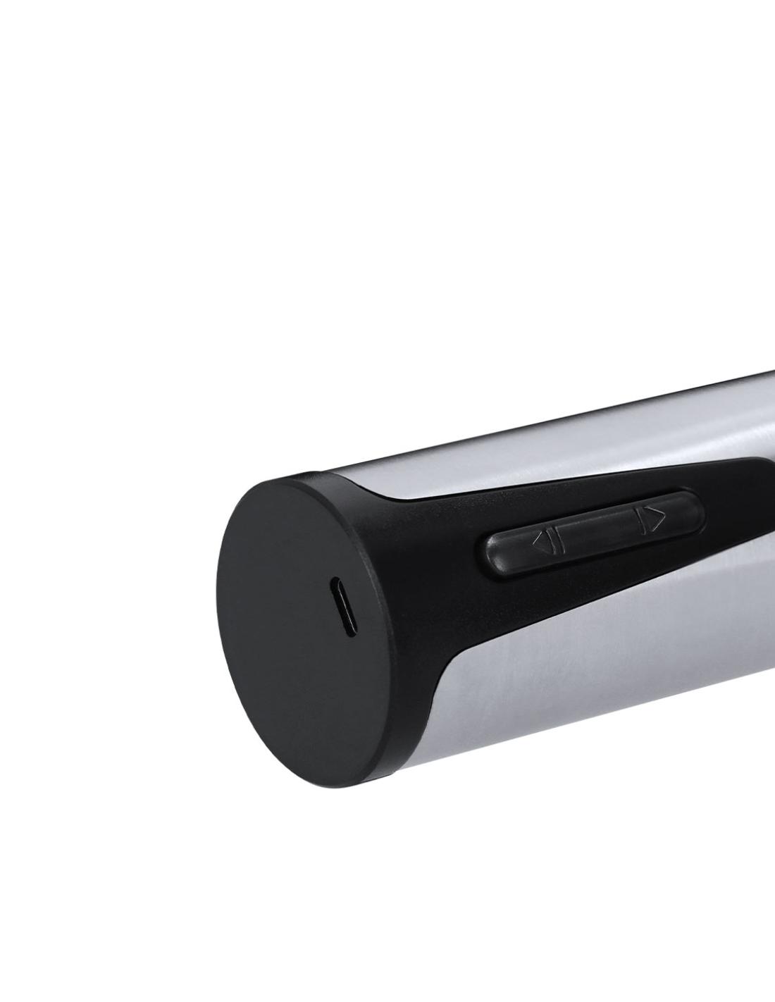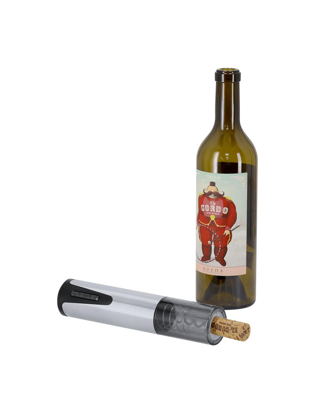 Sacacorchos eléctrico elaborado en acero inoxidable y ABS. Cuenta con botón indicador de extracción y expulsador de corcho. Con indicadores de luz durante la carga y uso. Batería recargable de 500 mAh, incluye cable de carga tipo C. Un dispositivo fácil de usar y funcional.