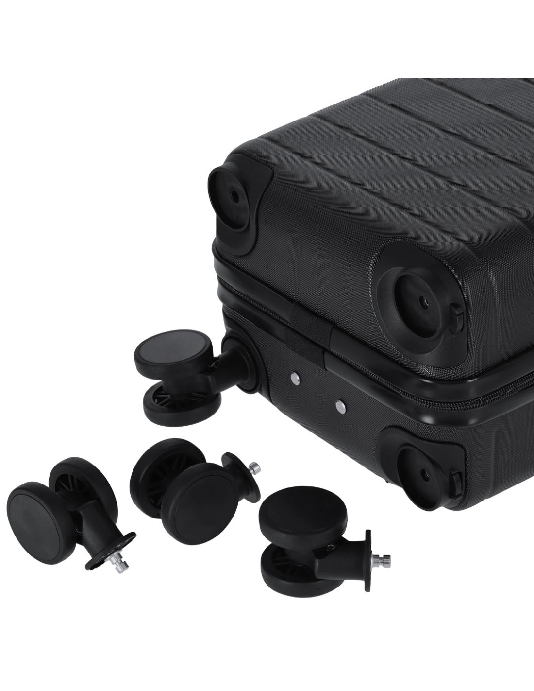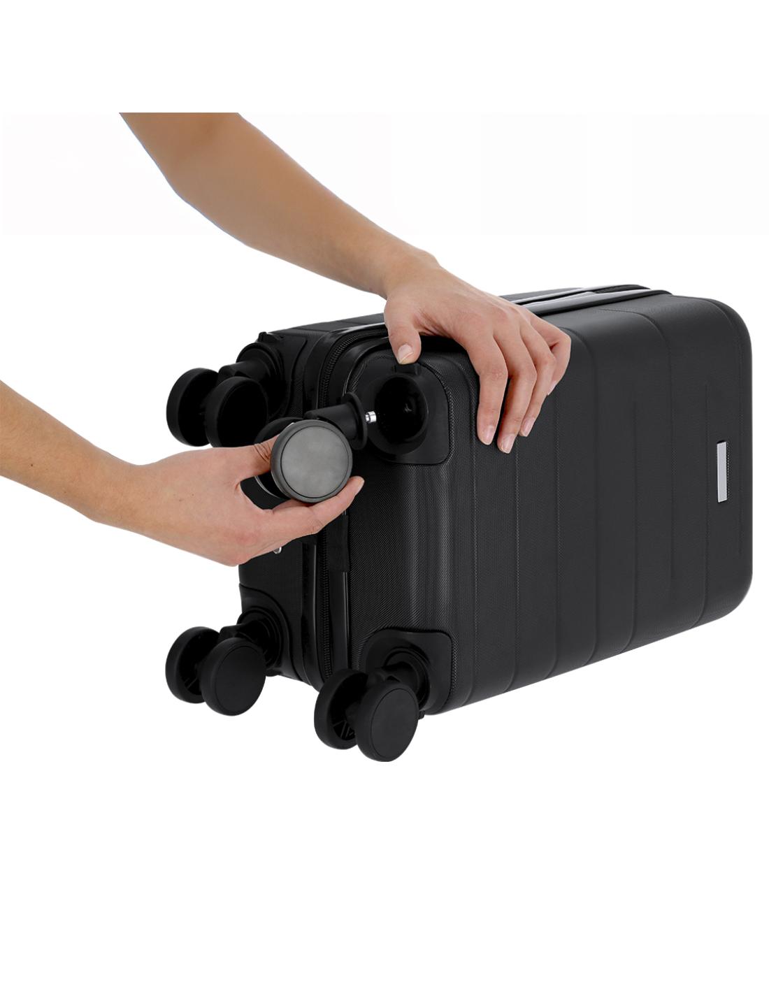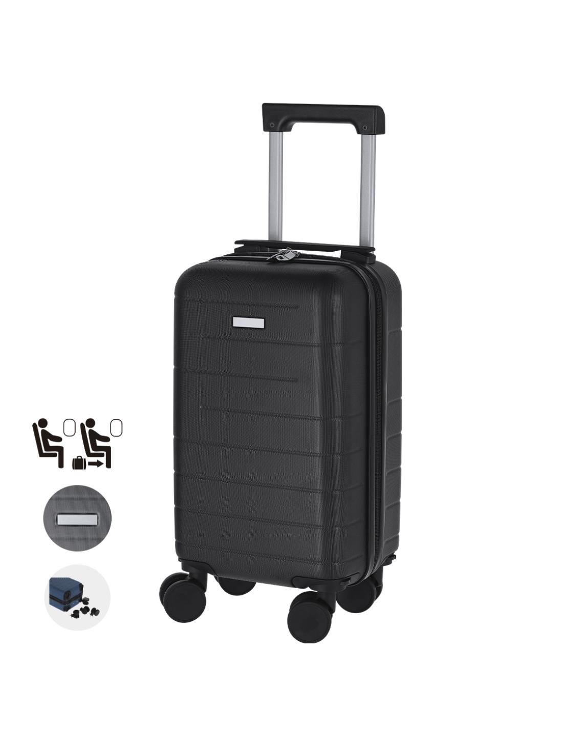 Práctico trolley de 4 ruedas giratorias extraíbles, en rígido ABS. Cierre de cremallera de doble tirador. Interior con compartimentos y diversos. Gracias a su tamaño compacto y a la extracción de las ruedas llevar un trolley como equipaje de manos no será un problema. Incluye bolsa para guardar las ruedas.
