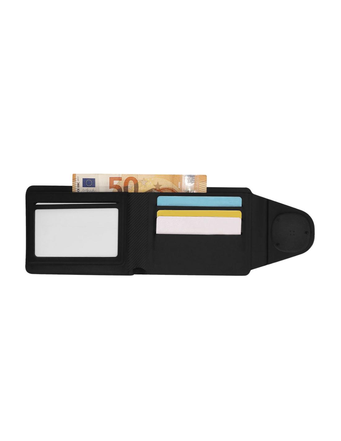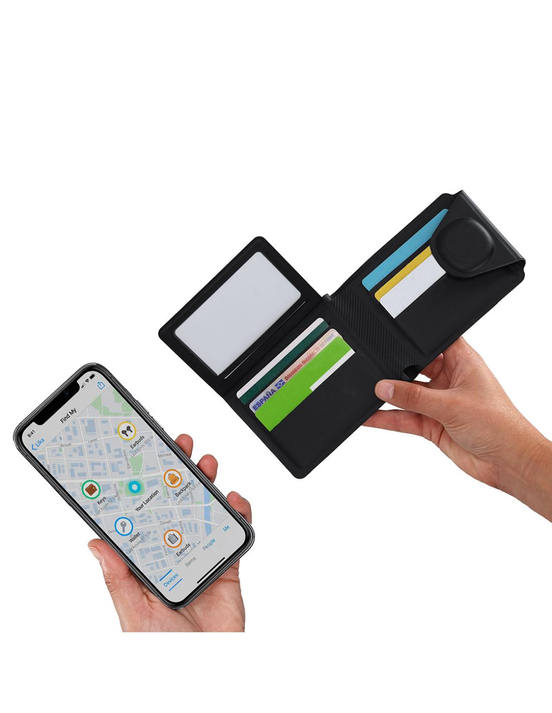 Tarjetero billetero localizador inteligente con elegante diseño en PU. Dispone de múltiples compartimentos. Con sistema de conexión dual, compatible con Apple Find My y Android Find Hub, el cual te permite rastrear tus pertenencias en tiempo real, de forma rápida y precisa. Con cierre magnético para mayor seguridad. Pila de botón incluida.