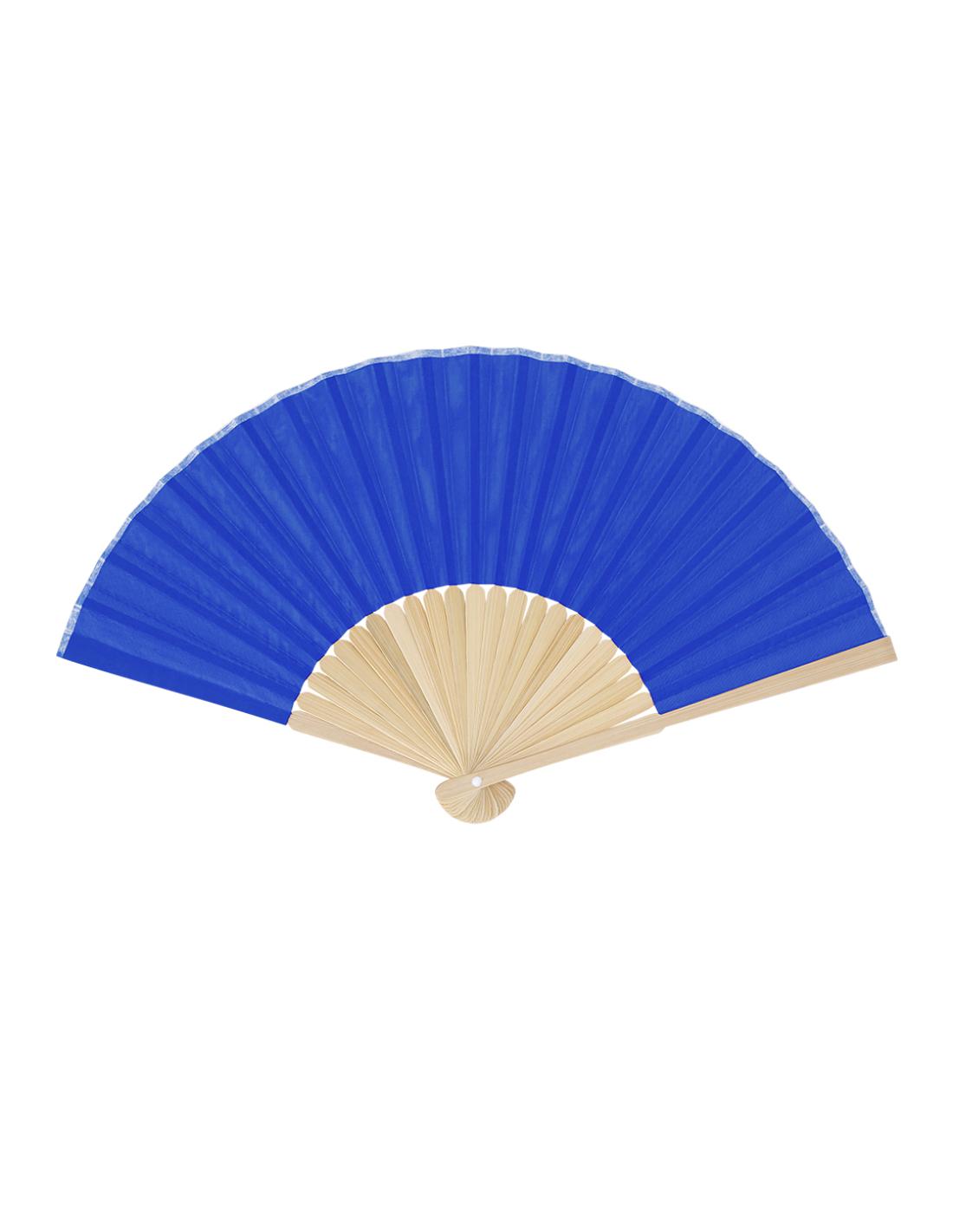 Abanico con varillas fabricadas en resistente bambú. Tela en resistente poliéster 190T.