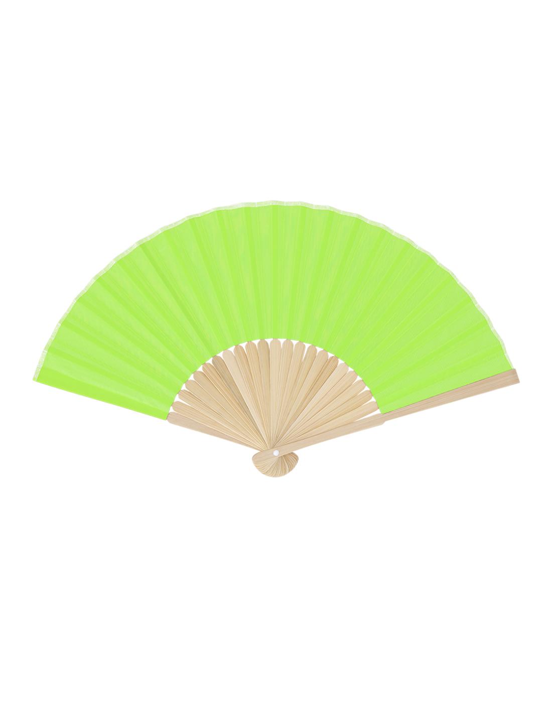 Abanico con varillas fabricadas en resistente bambú. Tela en resistente poliéster 190T.