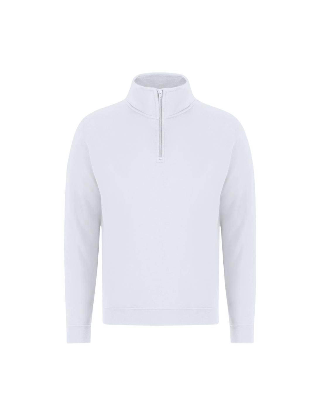 Sudadera unisex con media cremallera en algodón y poliester en suave felpa perchada 280 g/m2. Cuello alto doble forrado. Cremallera a tono con tirador. Puños y cinturilla en punto canalé 1x1 con elastano, para un ajuste cómodo y duradero. Con costura lateral.