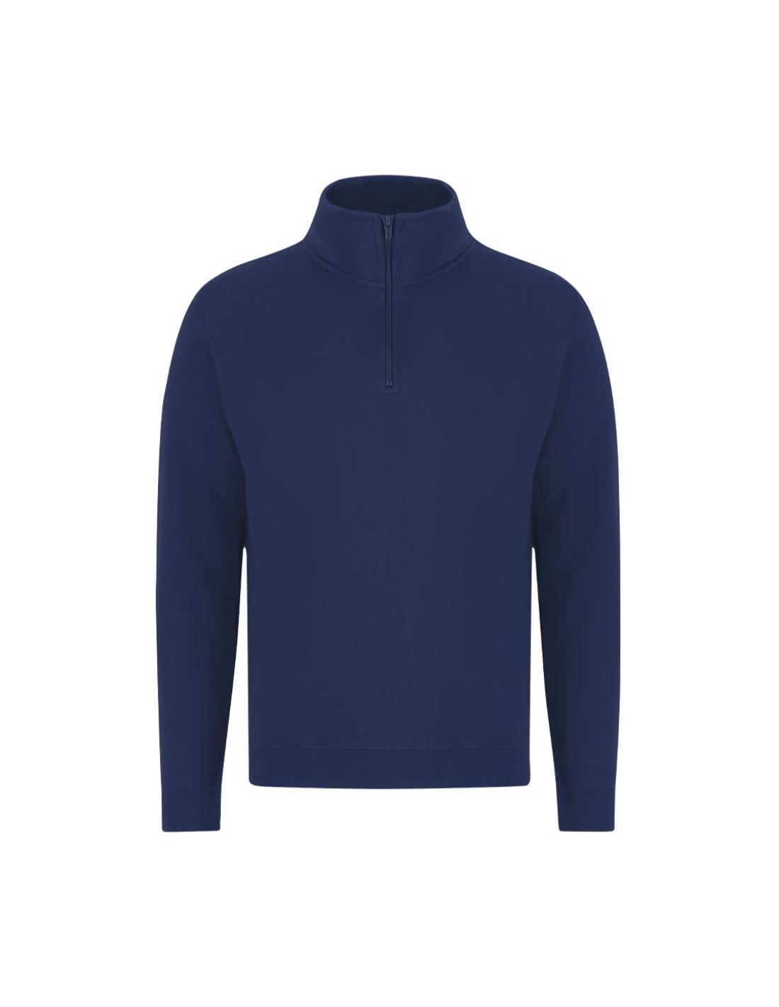 Sudadera unisex con media cremallera en algodón y poliester en suave felpa perchada 280 g/m2. Cuello alto doble forrado. Cremallera a tono con tirador. Puños y cinturilla en punto canalé 1x1 con elastano, para un ajuste cómodo y duradero. Con costura lateral.