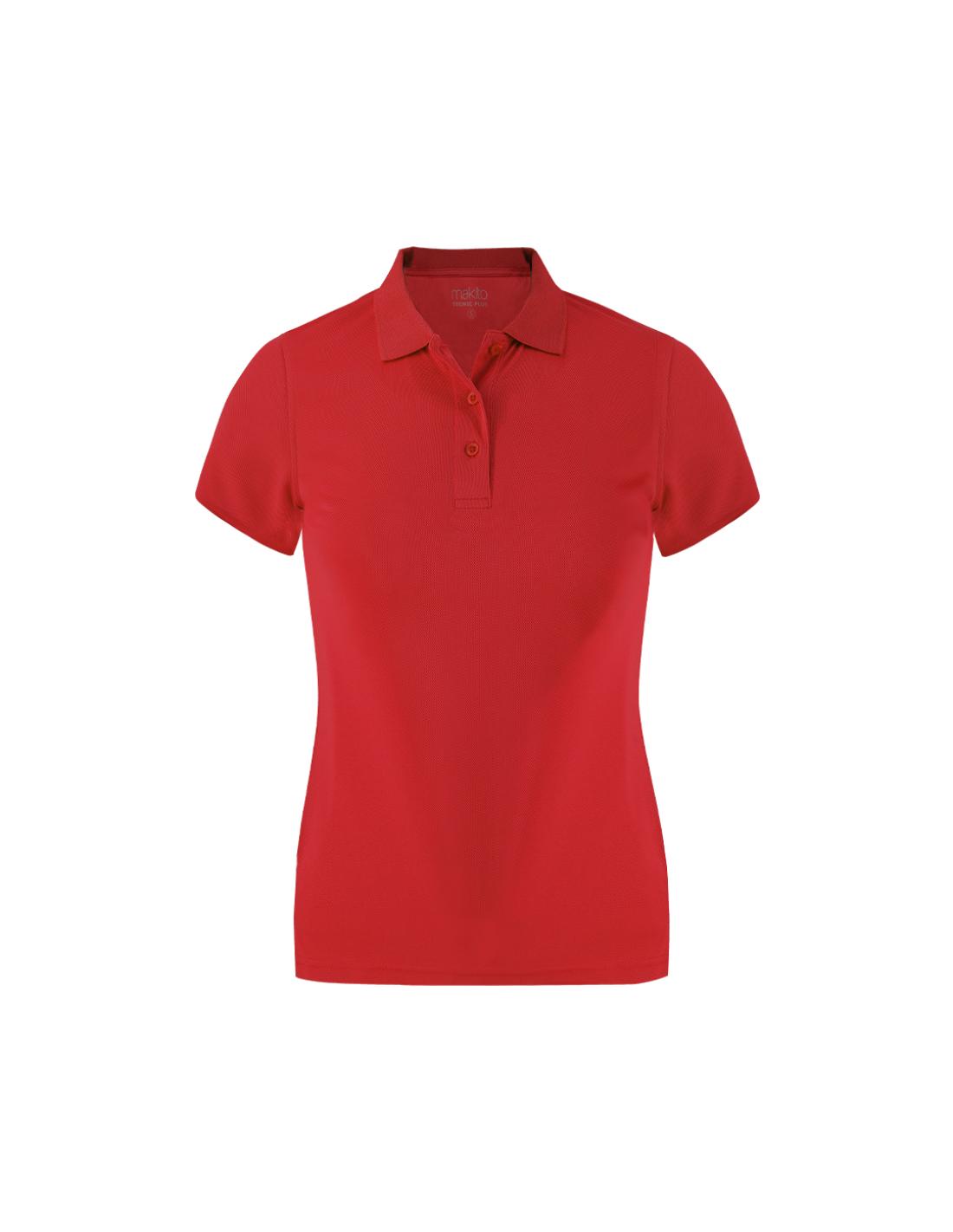 Polo entallado de manga corta, con fit femenino, confeccionado en tejido técnico 100% poliéster de 180 g/m². Suave, ligero y cómodo, incorpora tecnología Cool Dry, que favorece la transpiración y mantiene una sensación fresca y seca durante su uso. Con tapeta de tres botones a tono y aberturas laterales.